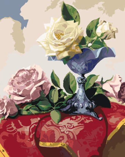 Maľovanie podľa čísel - ZÁTIŠIE MAGNÓLIE V BIELOMODREJ VÁZE (PIETER WAGEMANS)
