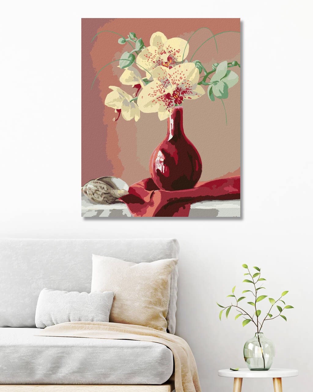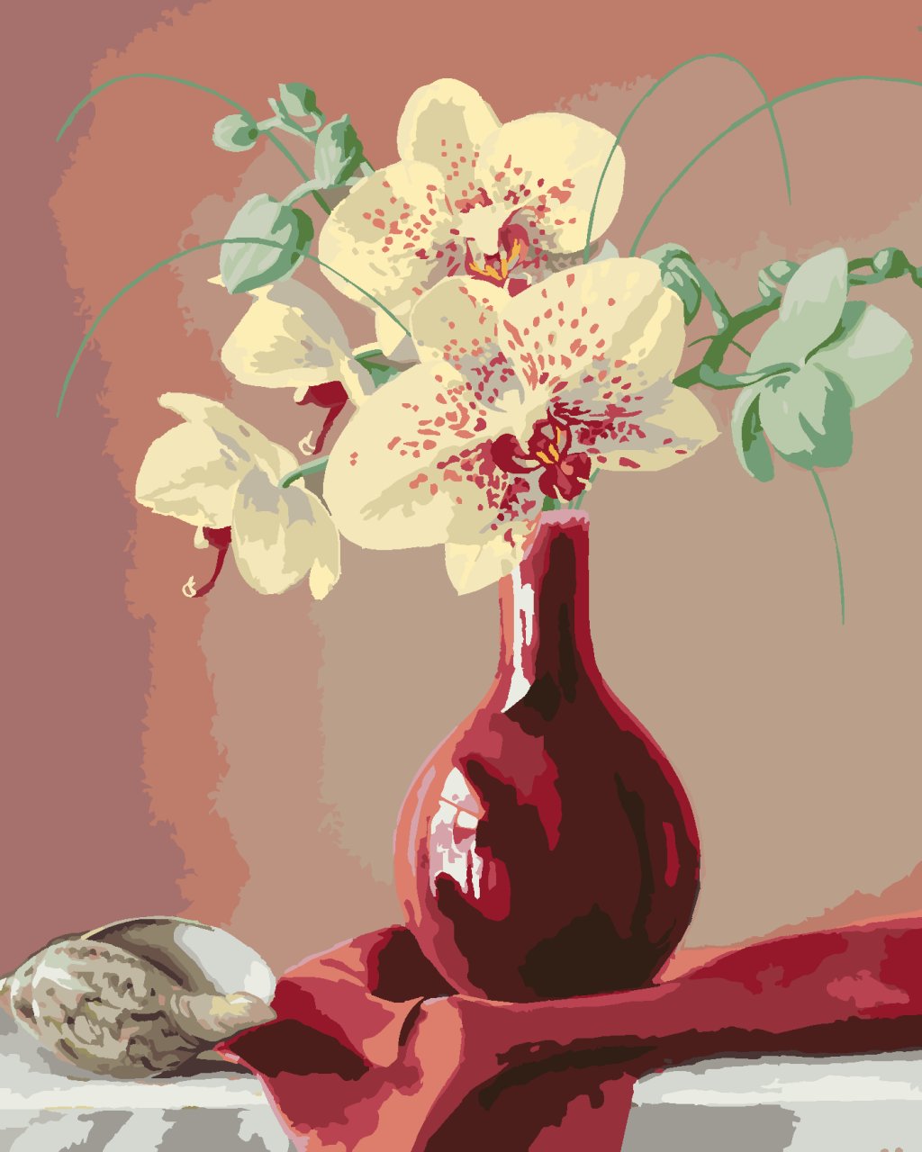 Maľovanie podľa čísel - ZÁTIŠIE ORCHIDEA V ČERVENEJ VÁZE A MUŠĽA (PIETER WAGEMANS)