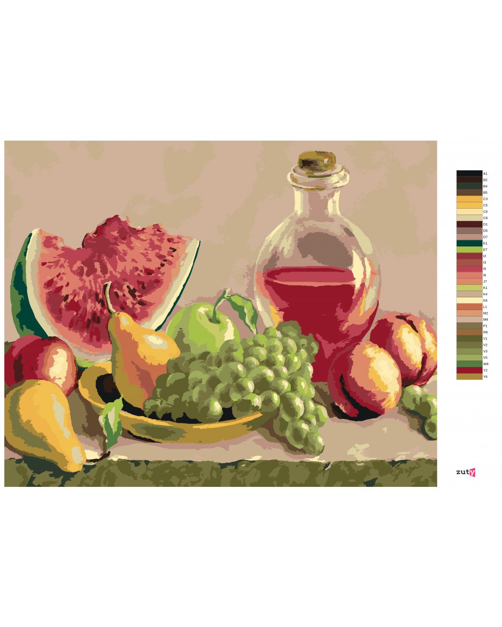 Maľovanie podľa čísel - ZÁTIŠIE S BROSKYŇAMI, HROZNOM A MELÓNOM
