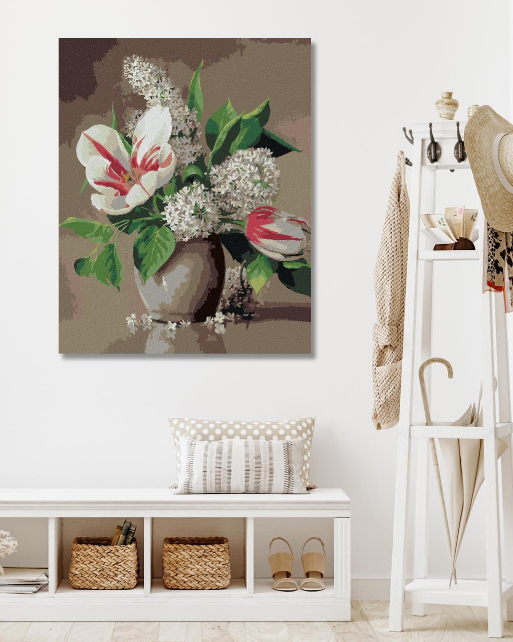 Maľovanie podľa čísel - ZÁTIŠIE TULIPÁN A ORGOVÁN V KERAMICKOM KVETINÁČI (PIETER WAGEMANS)