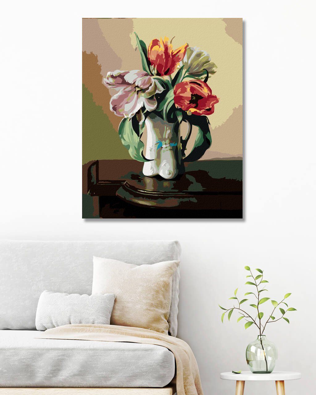 Maľovanie podľa čísel - ZÁTIŠIE TULIPÁNY V PORCELÁNOVEJ VÁZE NA STOLE (PIETER WAGEMANS)