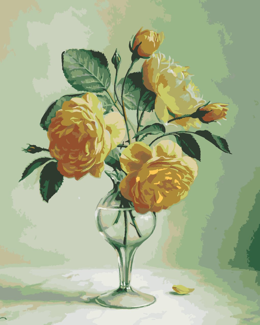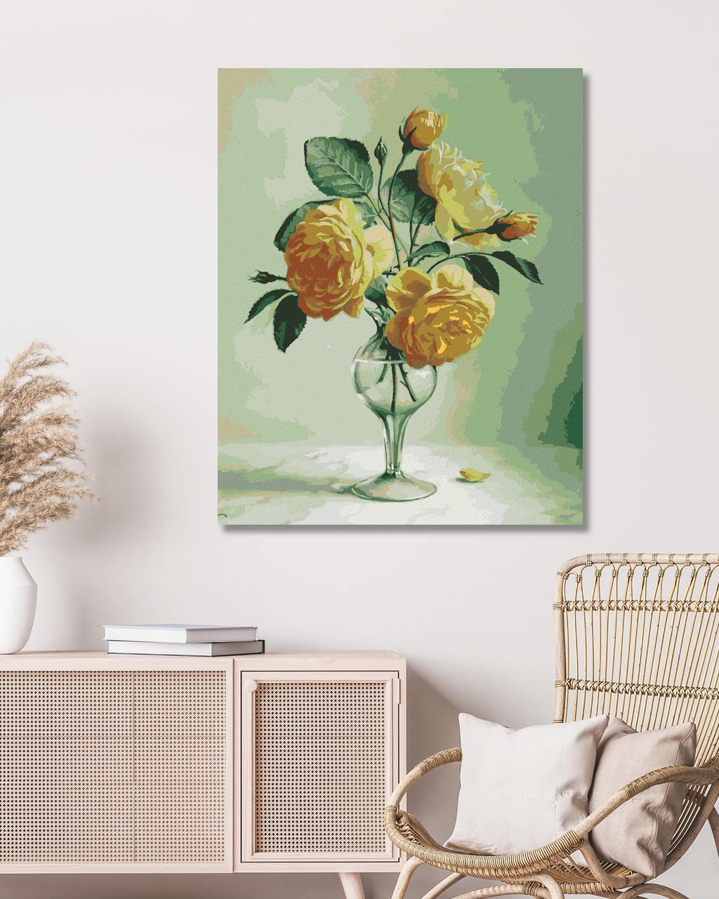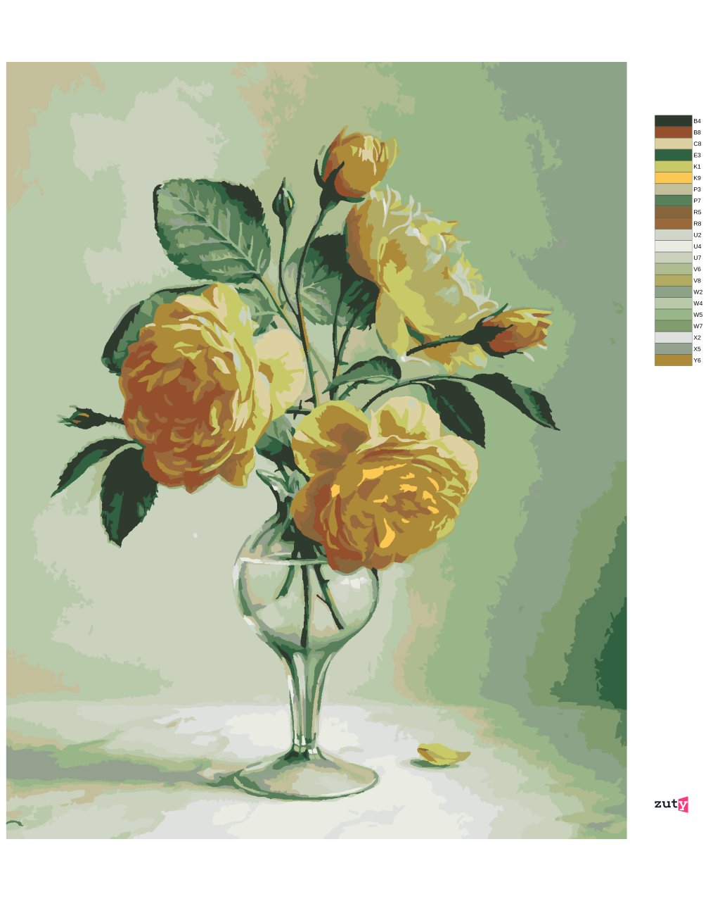 Maľovanie podľa čísel - ZÁTIŠIE ŽLTÉ RUŽE V SKLENENEJ VÁZE (PIETER WAGEMANS)
