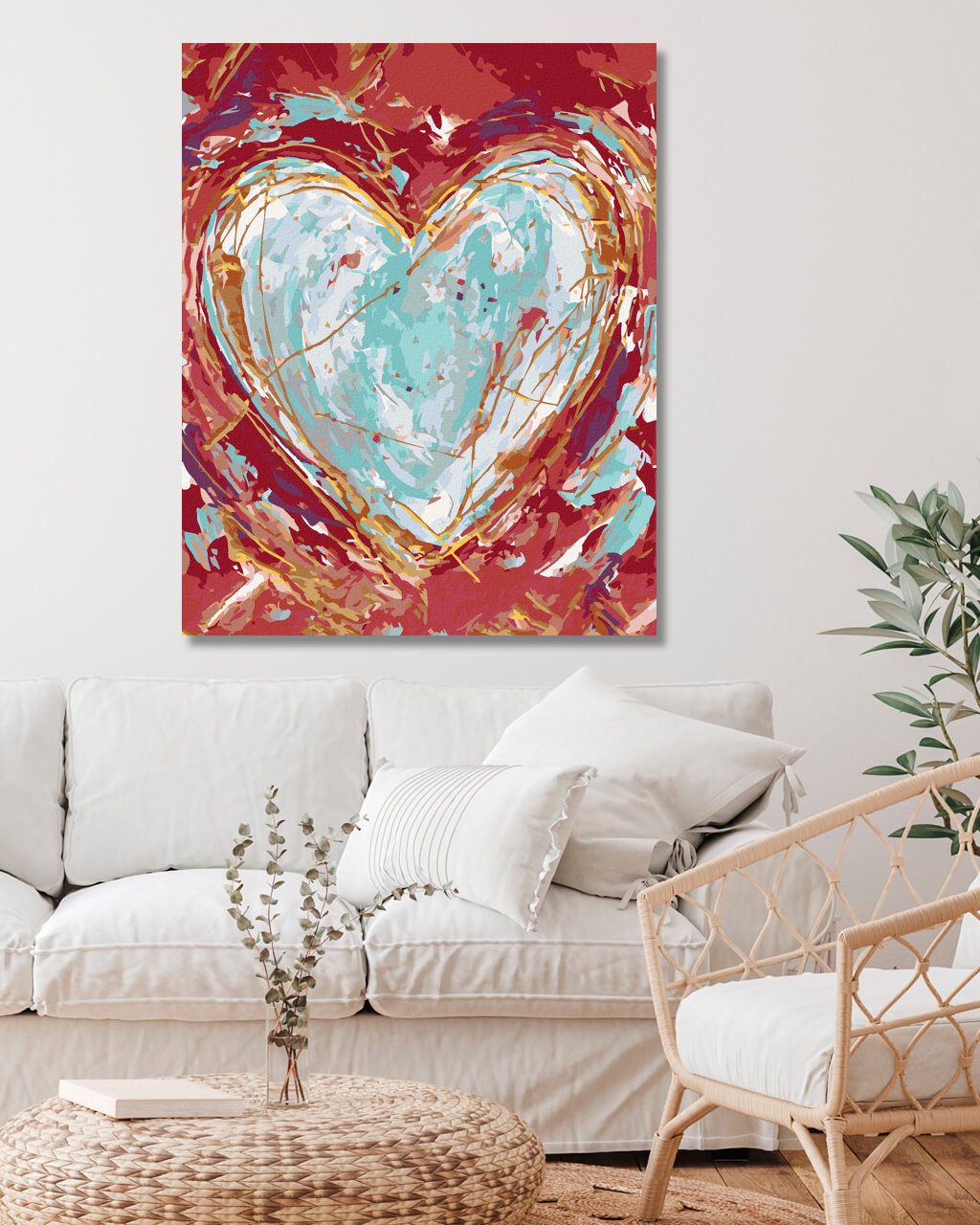 Maľovanie podľa čísel - ZELENÉ SRDCE NA ČERVENOM POZADÍ (HALEY BUSH)