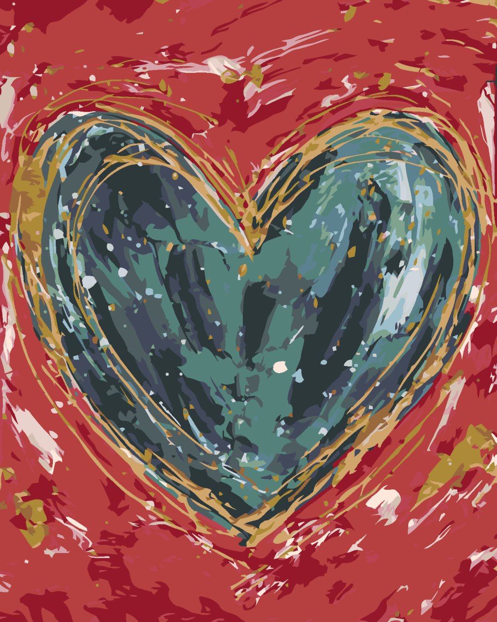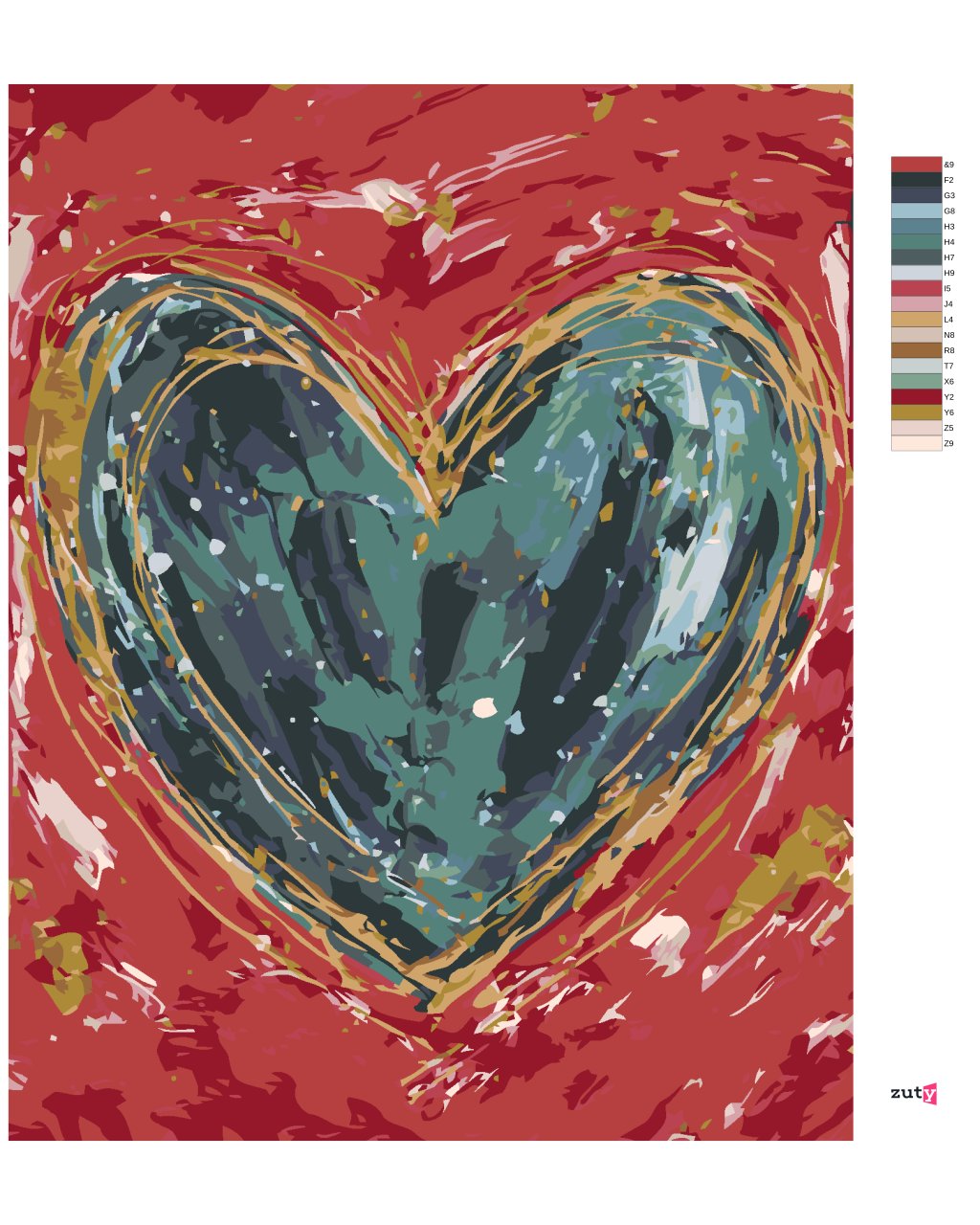 Maľovanie podľa čísel - ZELENÉ SRDCE NA ČERVENOM POZADÍ II (HALEY BUSH)