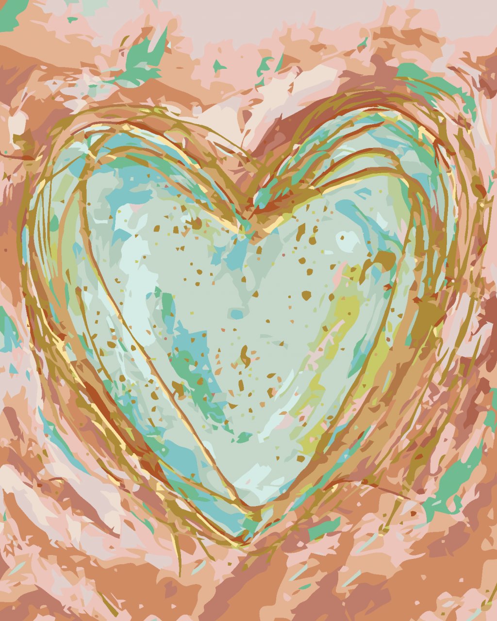 Maľovanie podľa čísel - ZELENÉ SRDCE NA RUŽOVOM POZADÍ (HALEY BUSH)