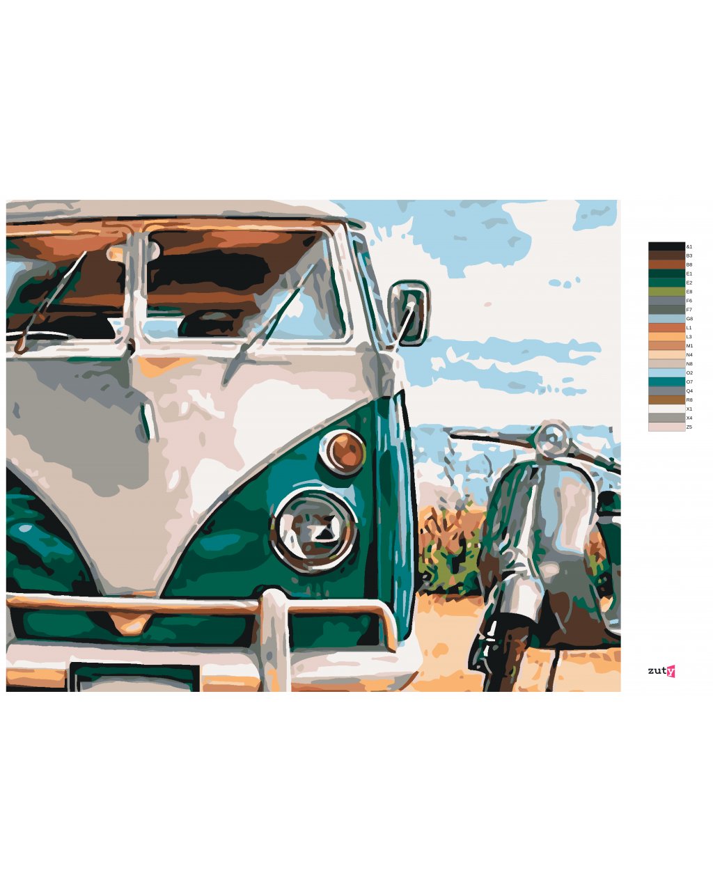 Maľovanie podľa čísel - ZELENÉ STARÉ AUTO