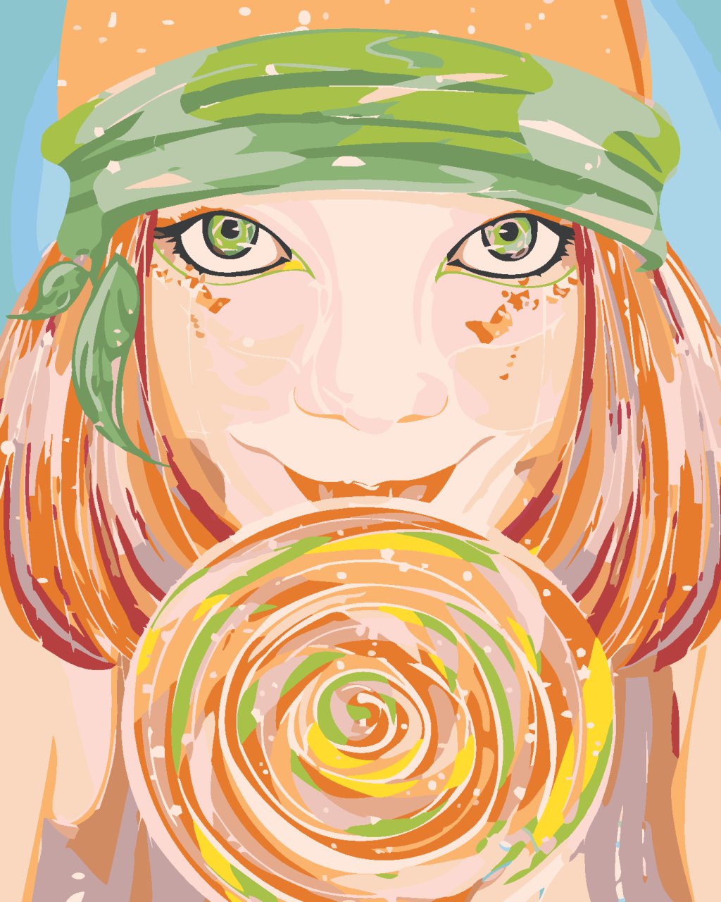 Maľovanie podľa čísel - ZELENOOKÁ ŽENA A LÍZATKO