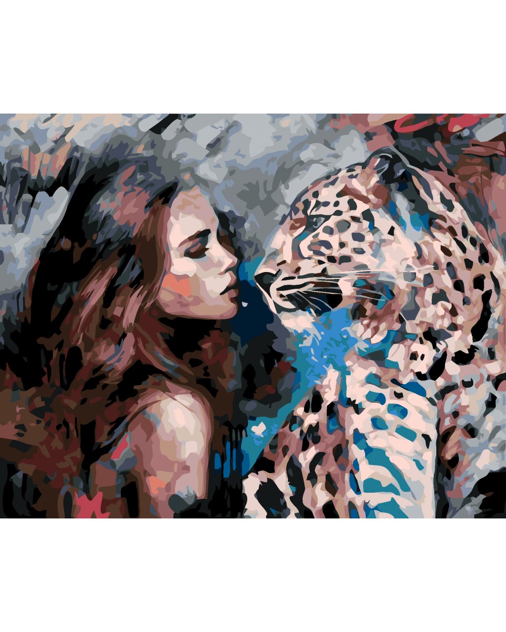 Maľovanie podľa čísel - ŽENA A LEOPARD