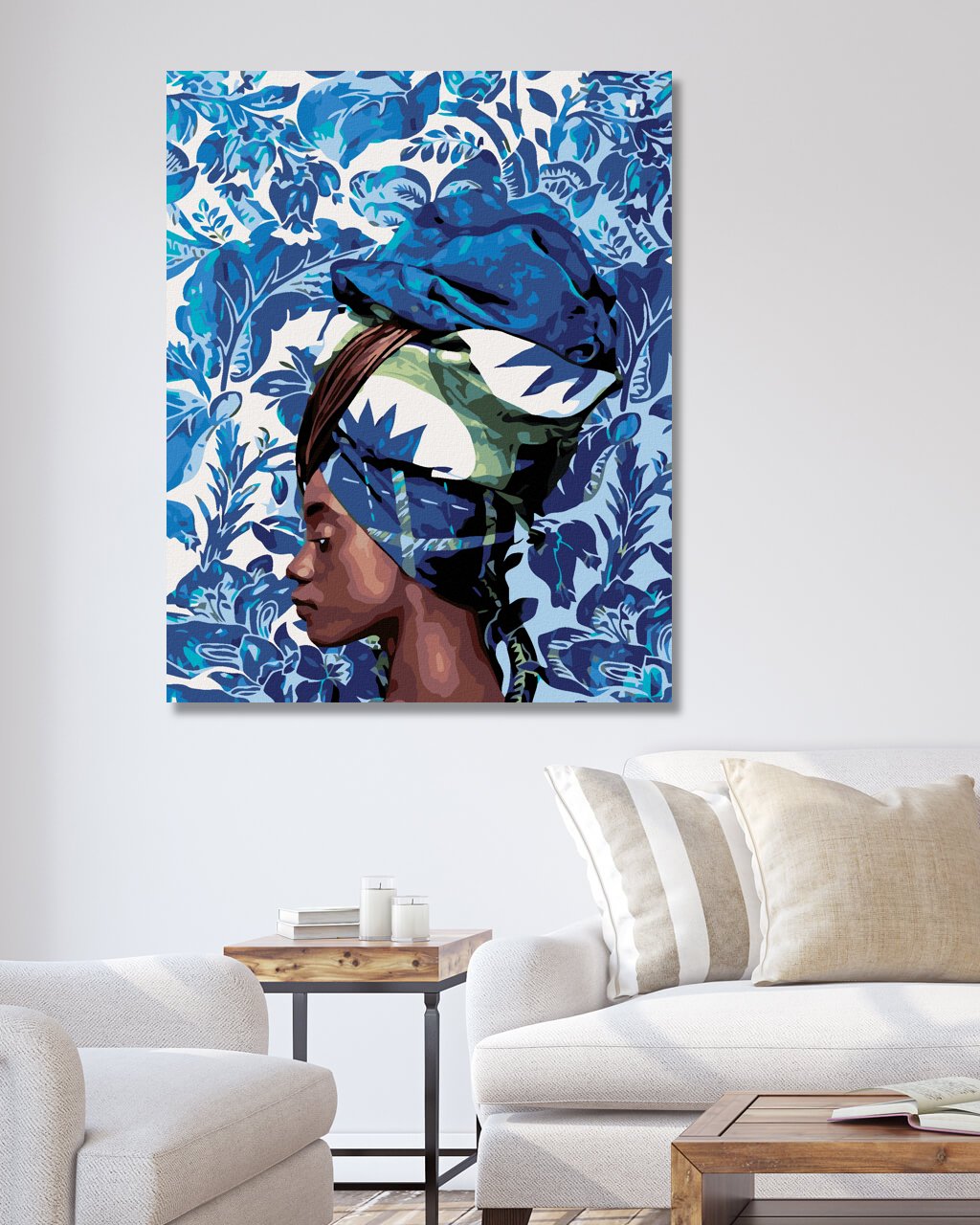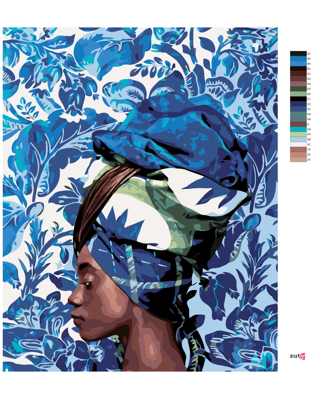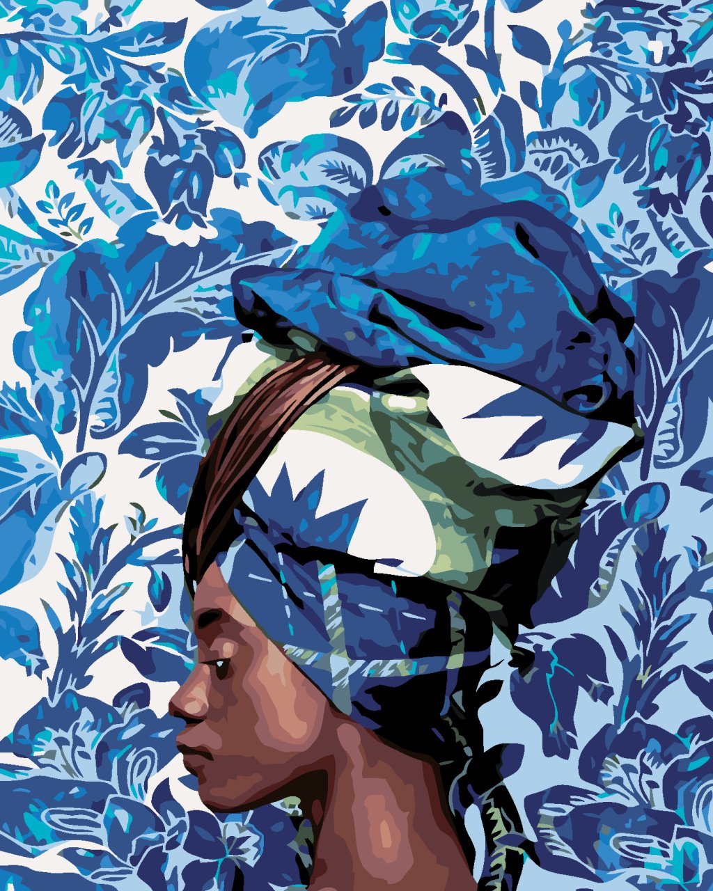 Maľovanie podľa čísel - ŽENA A MODRÉ VZORY