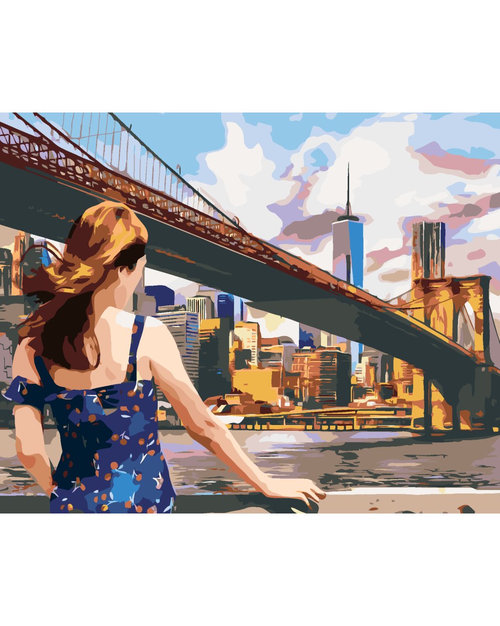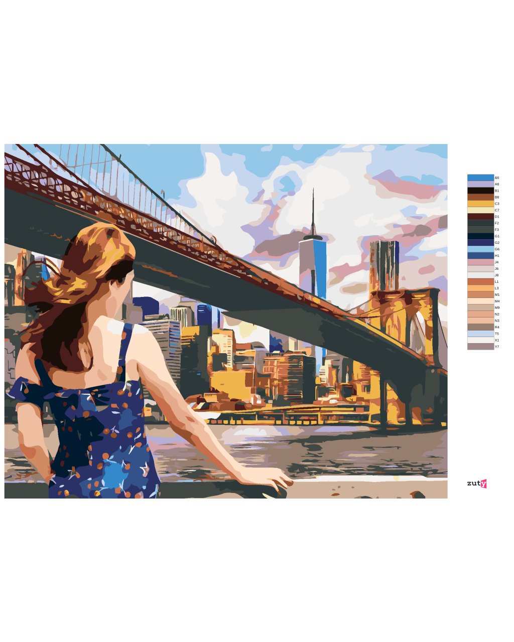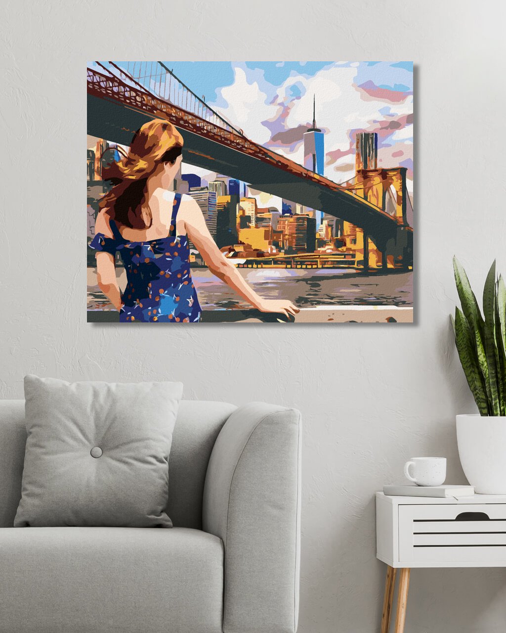 Maľovanie podľa čísel - ŽENA PRI BROOKLYN BRIDGE V NEW YORKU