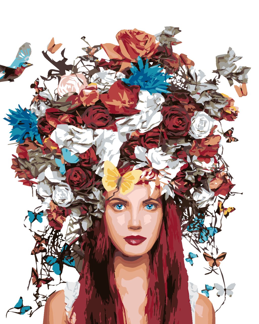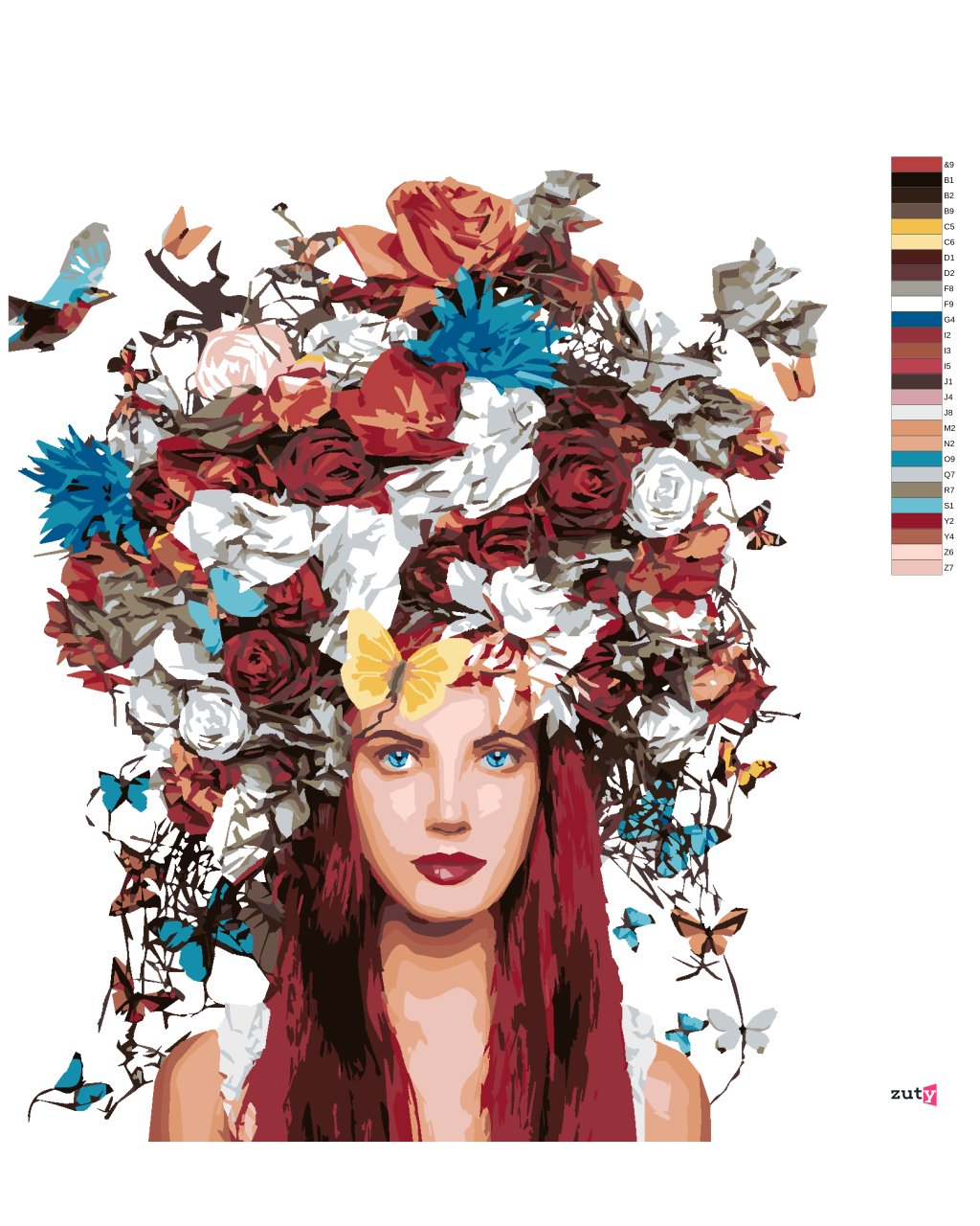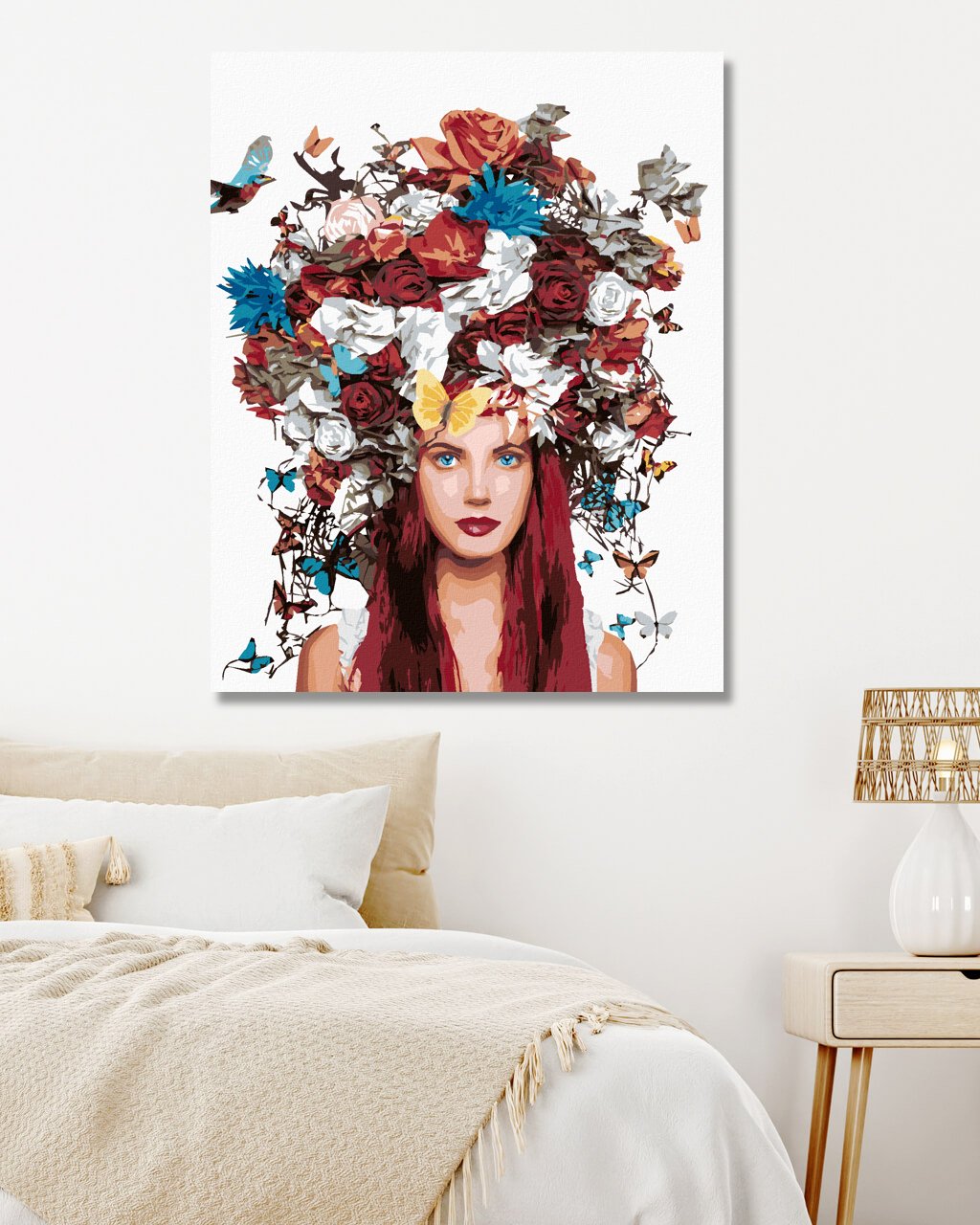 Maľovanie podľa čísel - ŽENA S KVETINOVOU KORUNOU