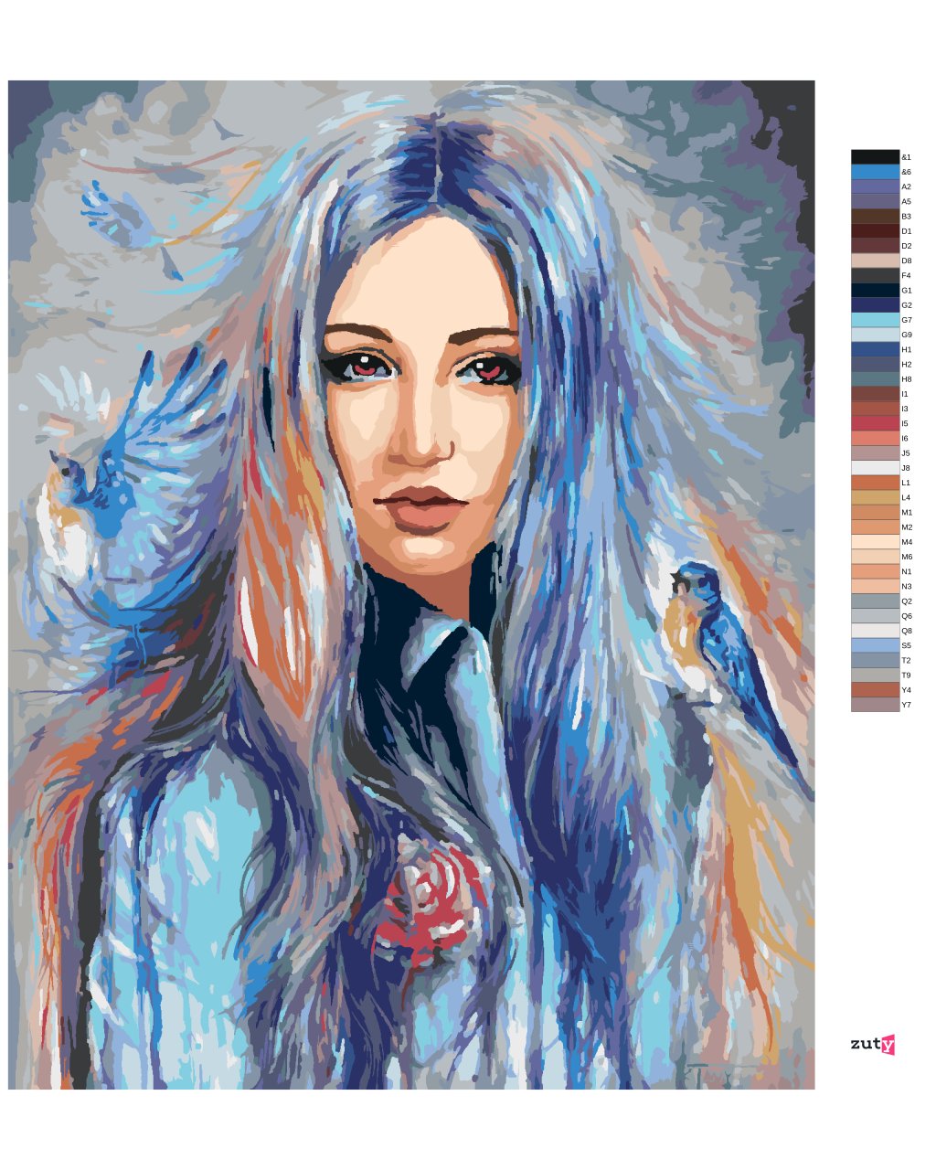 Maľovanie podľa čísel - ŽENA S MODRÝMI VTÁKMI