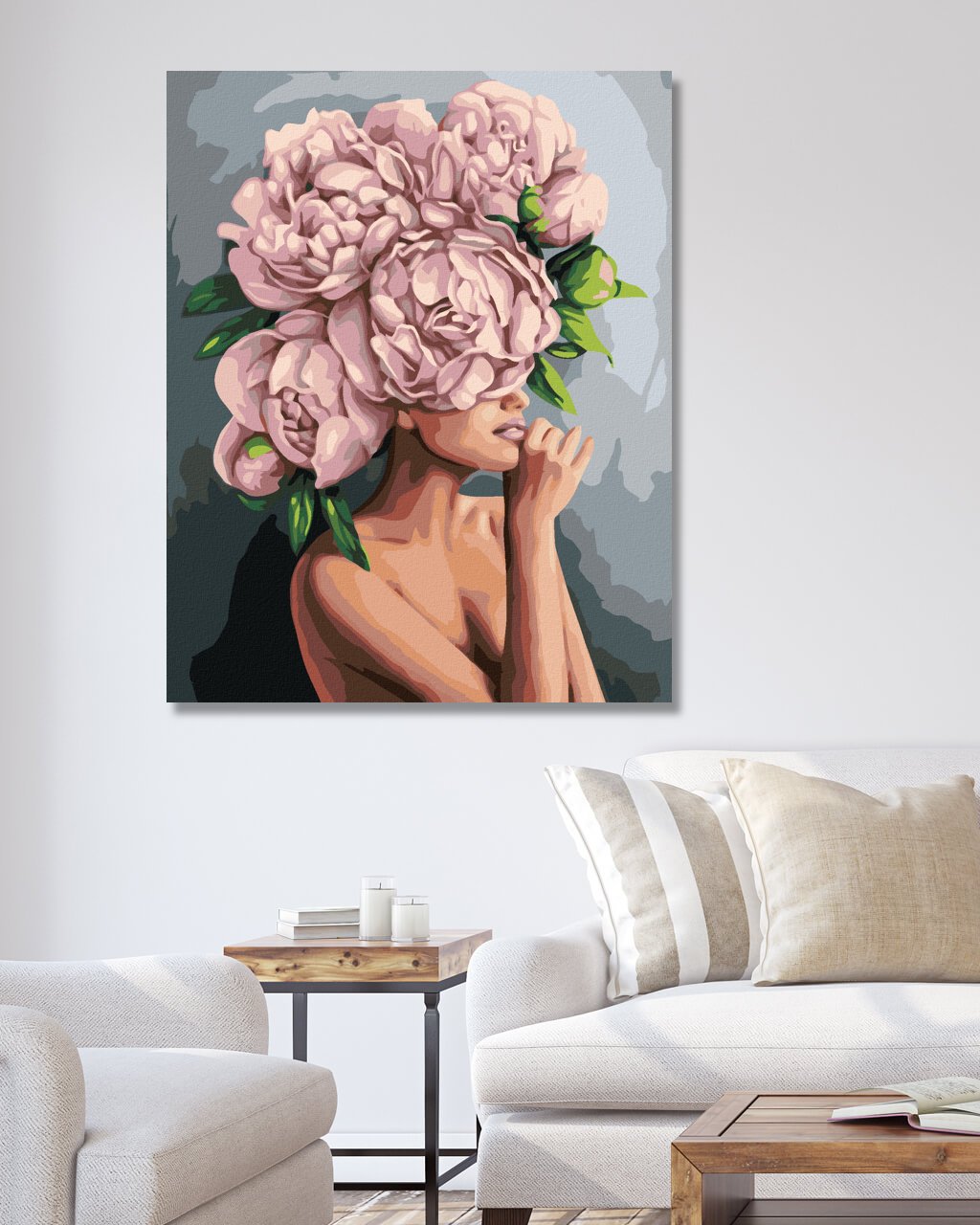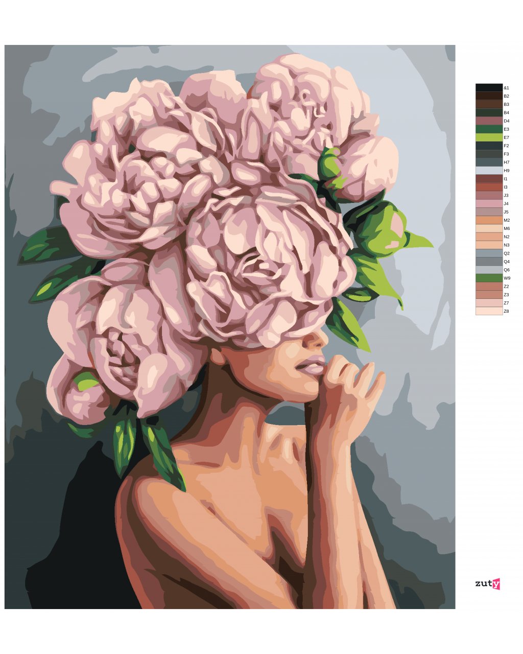 Maľovanie podľa čísel - ŽENA S RUŽOVÝMI PIVONKAMI NA HLAVE