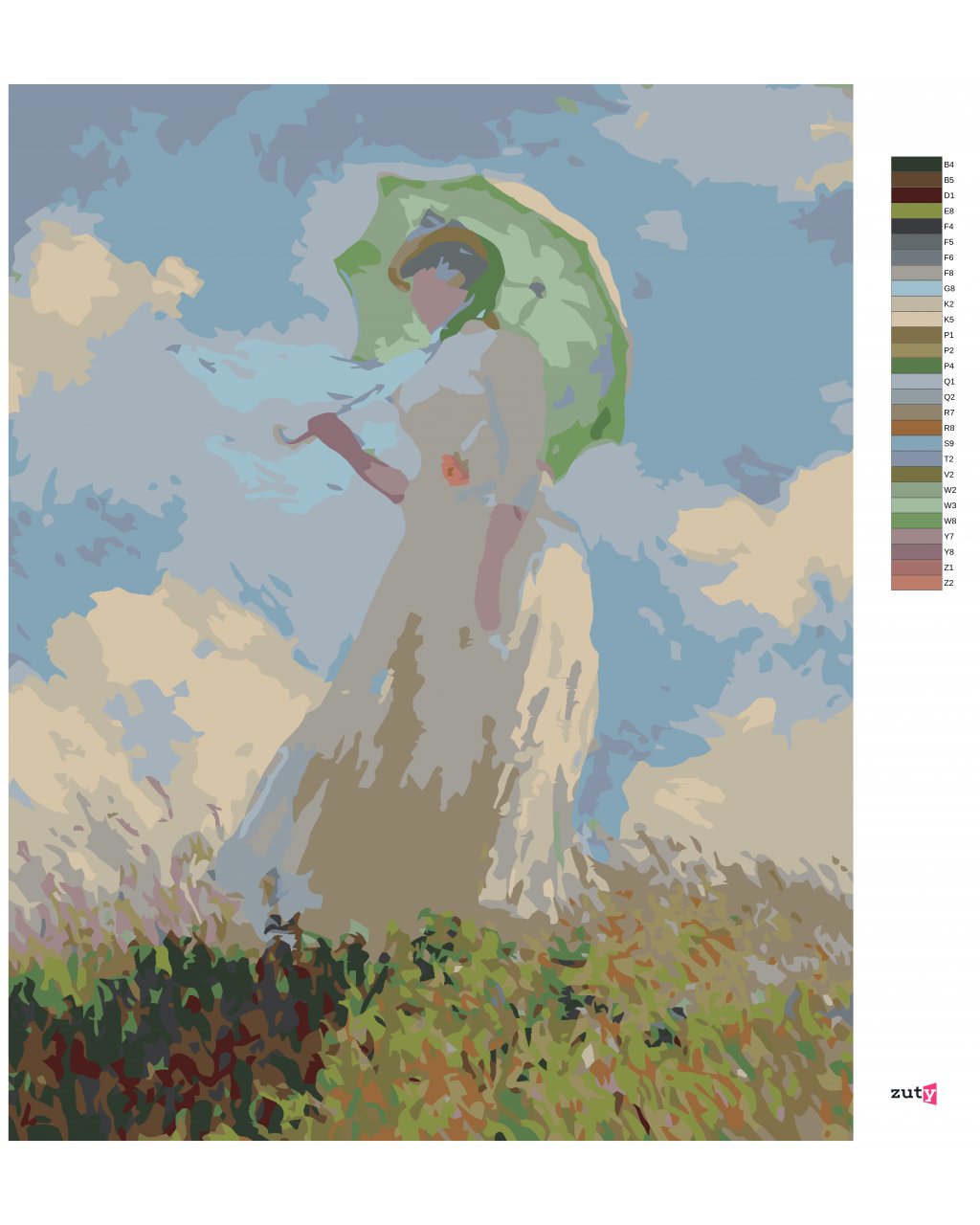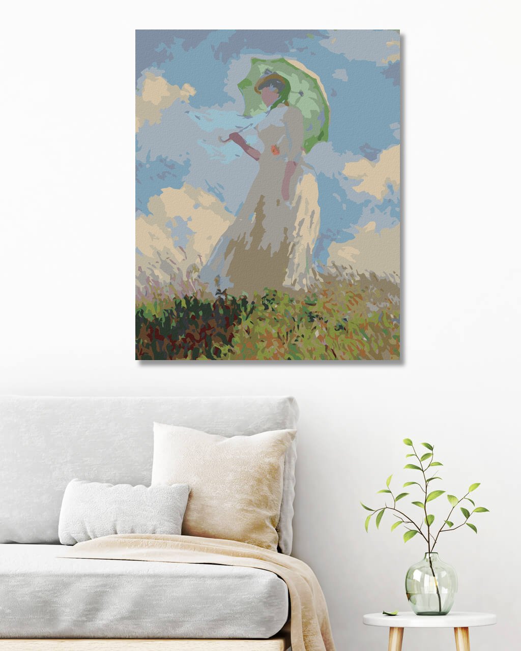 Maľovanie podľa čísel - ŽENA SO SLNEČNÍKOM OTOČENÁ VĽAVO (CLAUDE MONET)