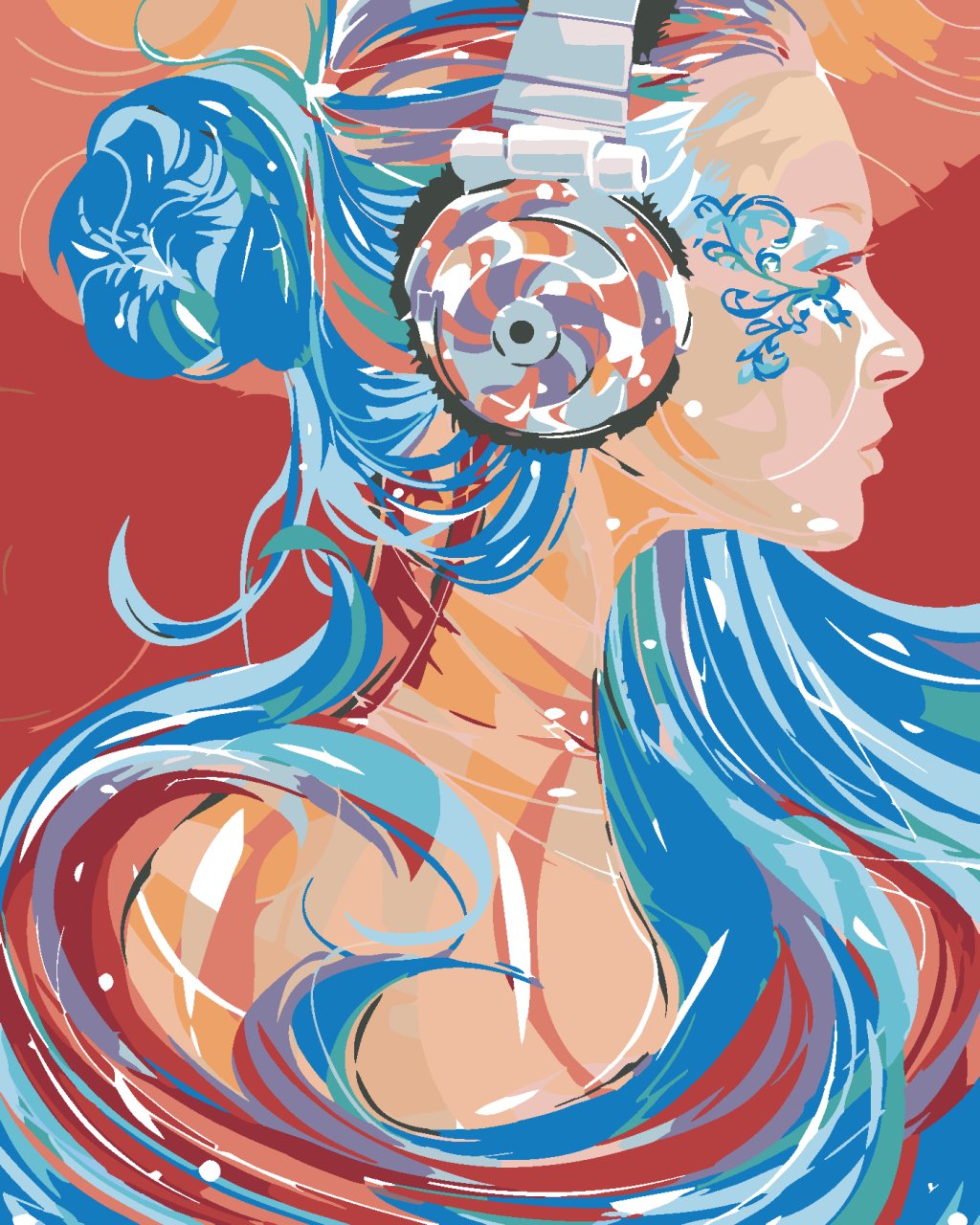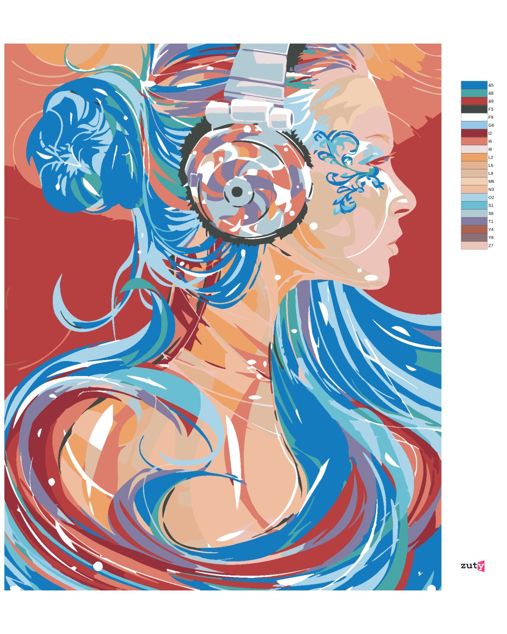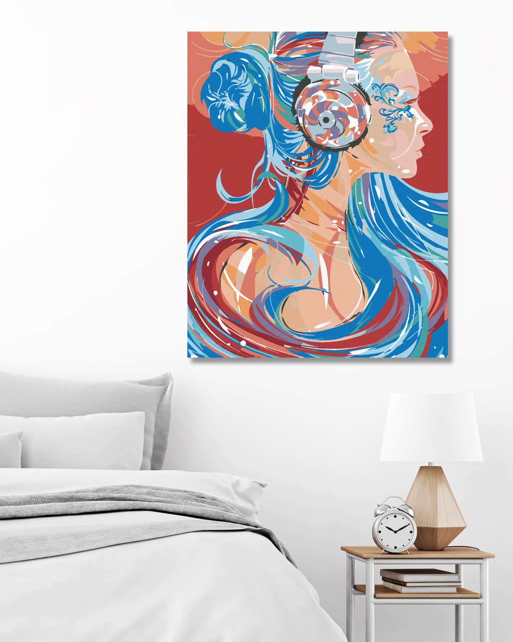 Maľovanie podľa čísel - ŽENA SO SLÚCHADLAMI V OPOJENÍ HUDBY