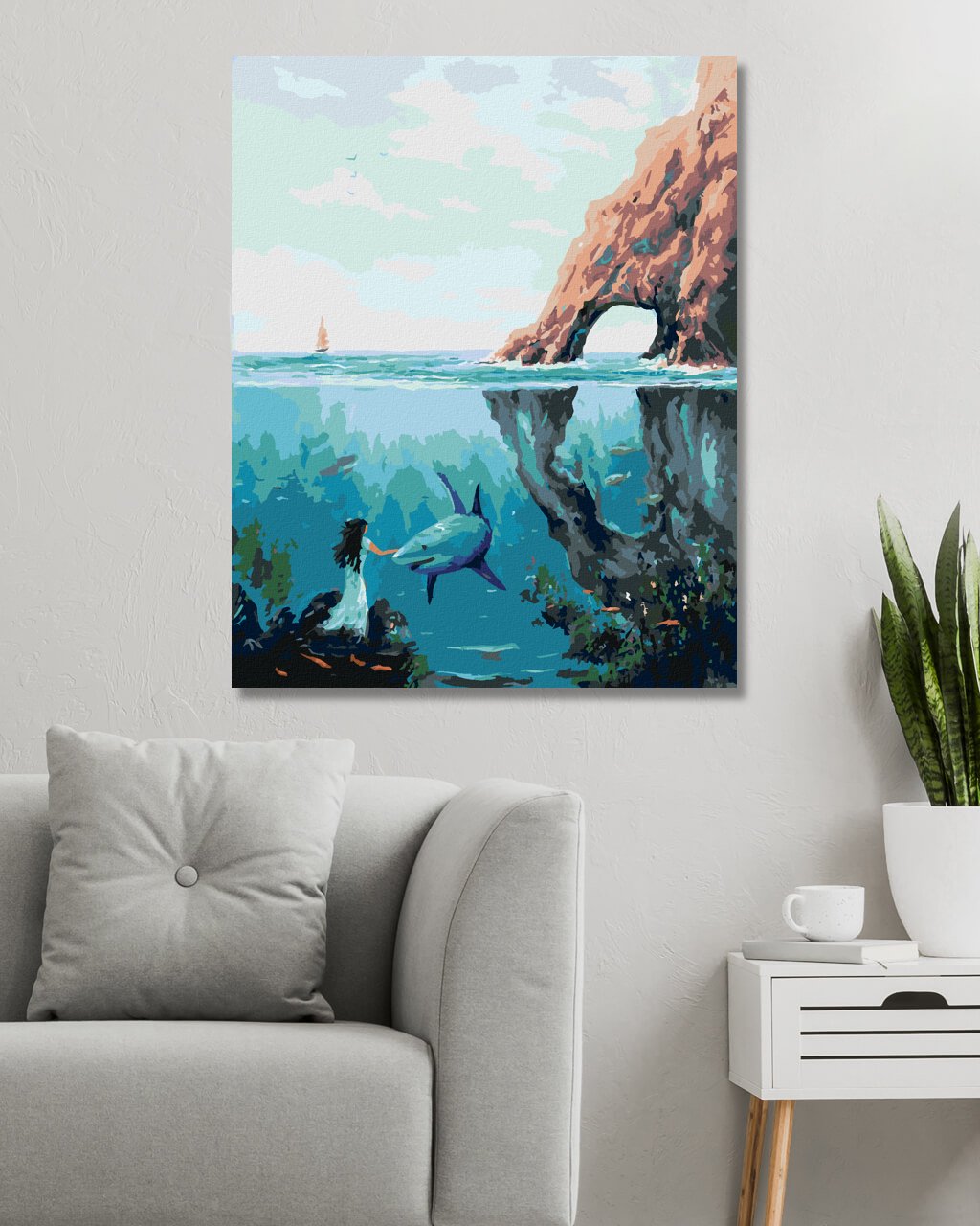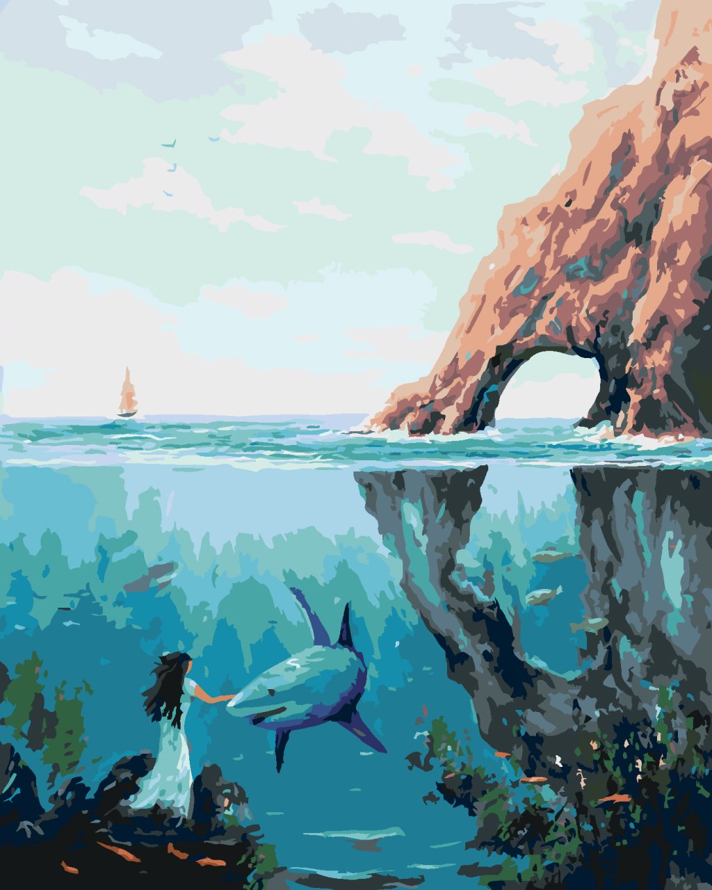 Maľovanie podľa čísel - ŽENA SO ŽRALOKOM POD VODOU