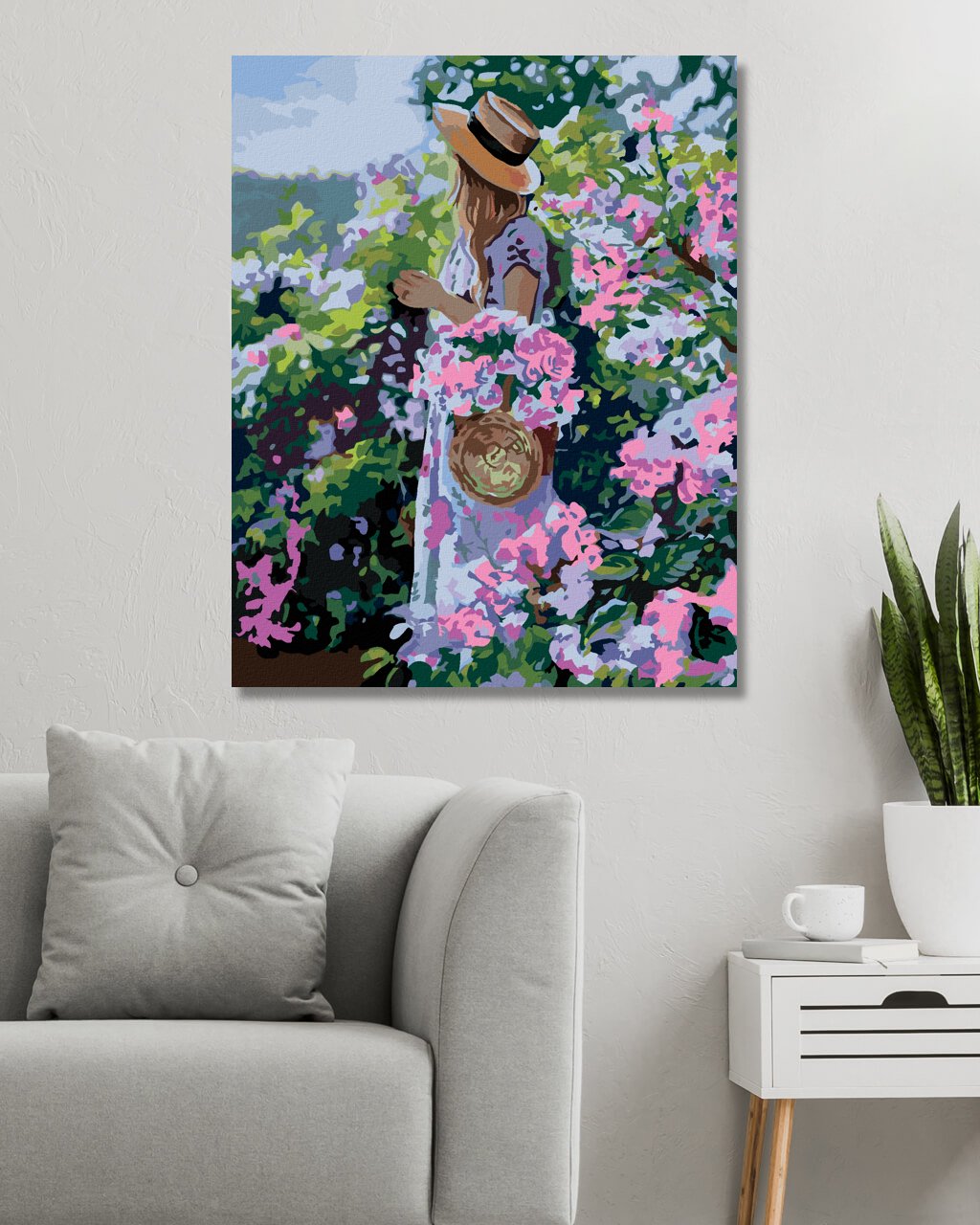 Maľovanie podľa čísel - ŽENA V KLOBÚKU PRI KVETOCH
