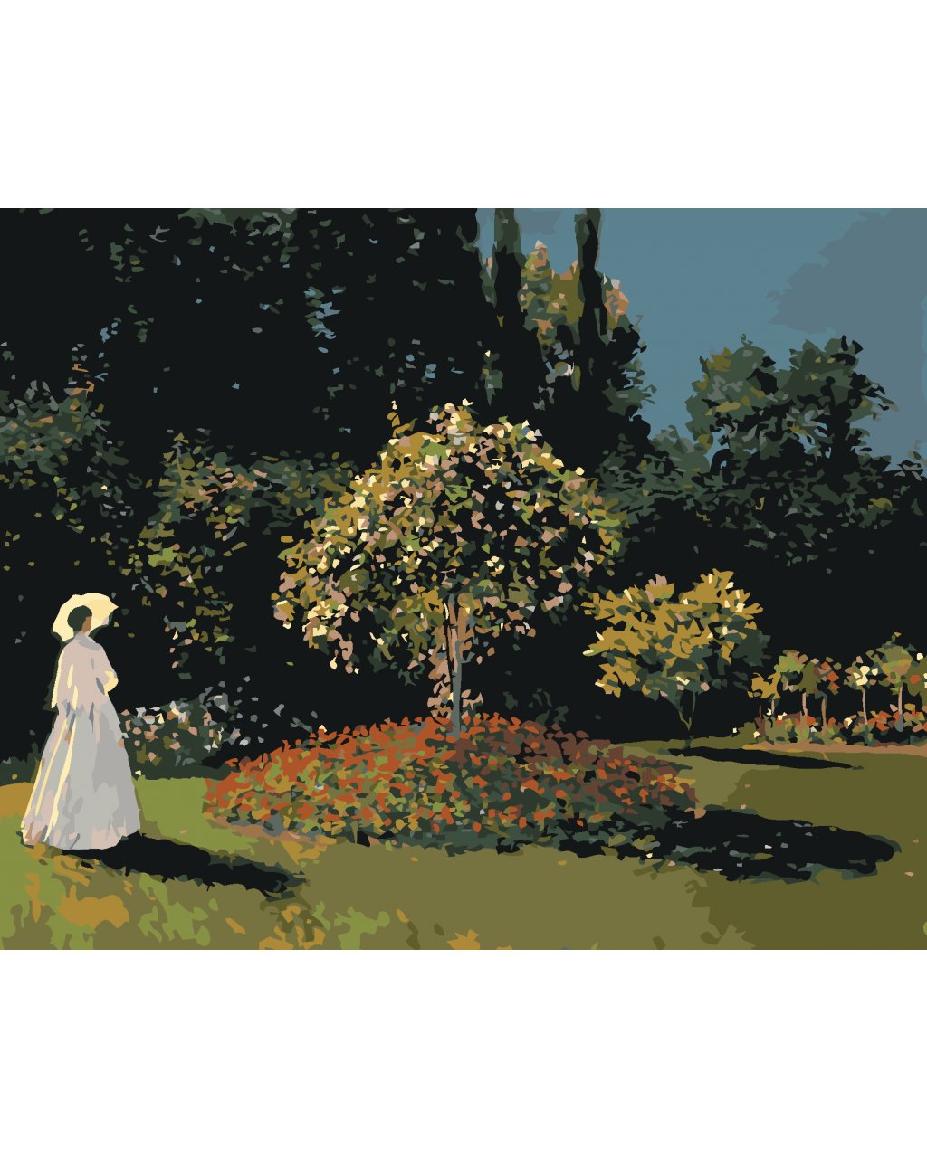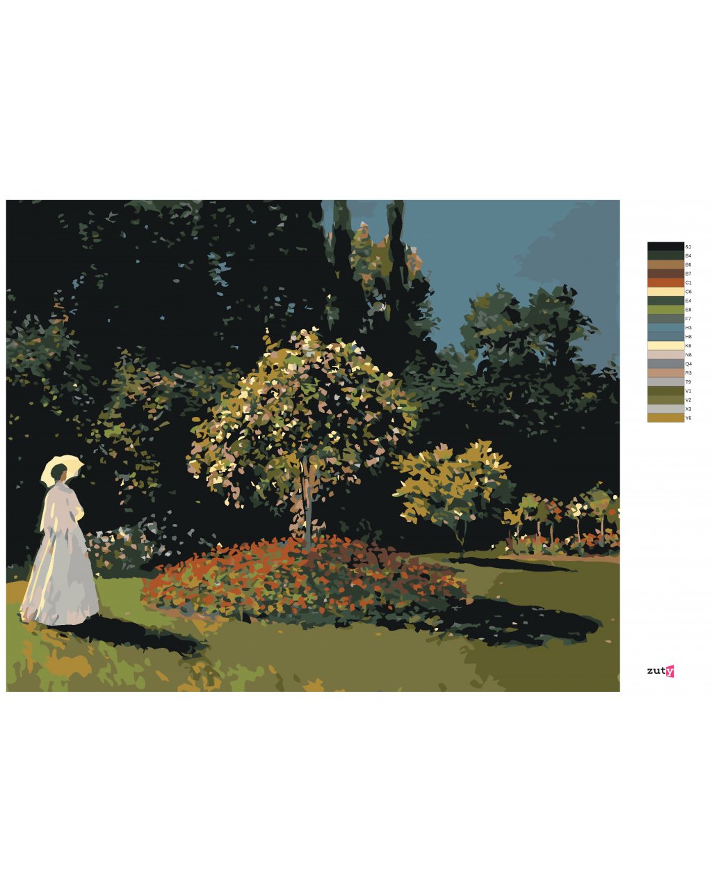 Maľovanie podľa čísel - ŽENA V ZÁHRADE (CLAUDE MONET)