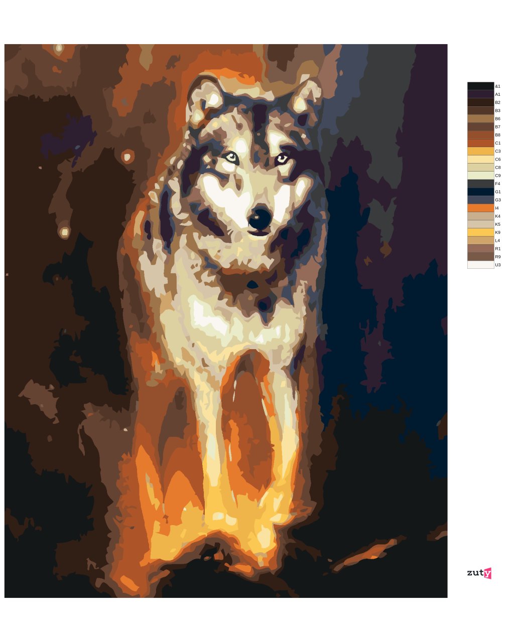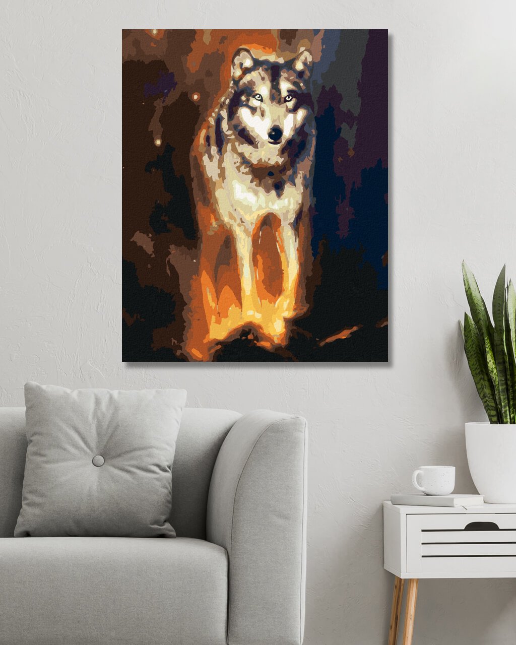 Maľovanie podľa čísel - ŽIARIACI VLK VO VESMÍRE