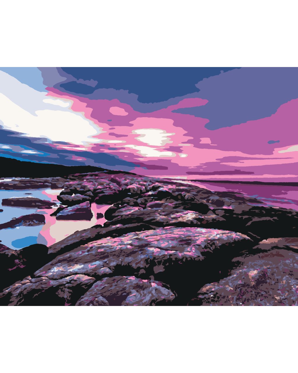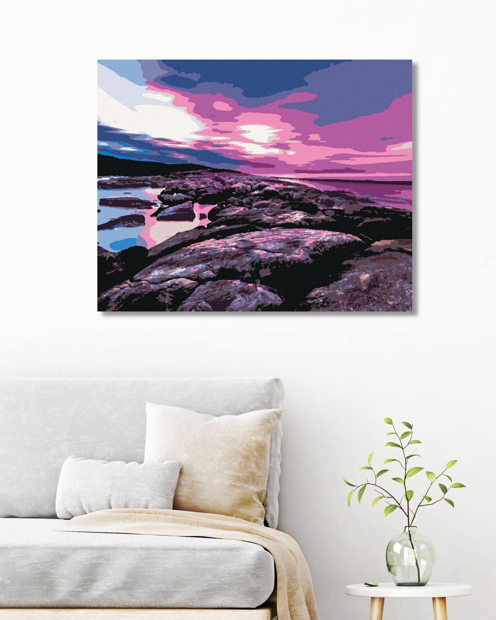 Maľovanie podľa čísel - ŽIARIACI ZÁPAD SLNKA NAD KAMEŇMI