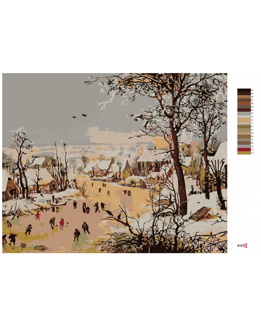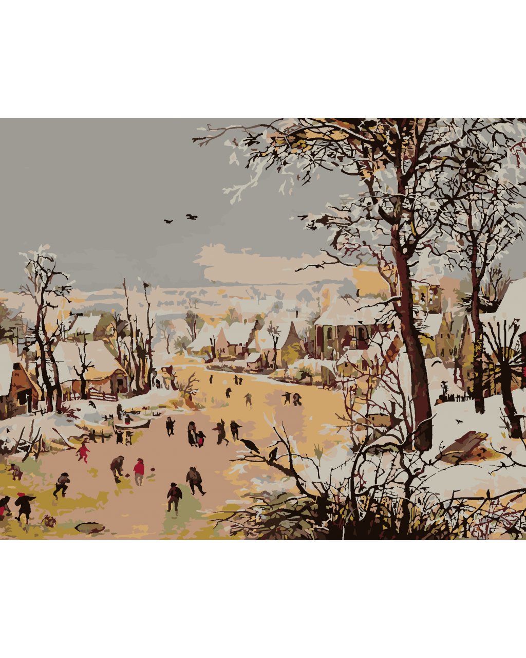 Maľovanie podľa čísel - ZIMNÁ KRAJINA S PASŤOU NA VTÁKY (PIETER BRUEGEL)