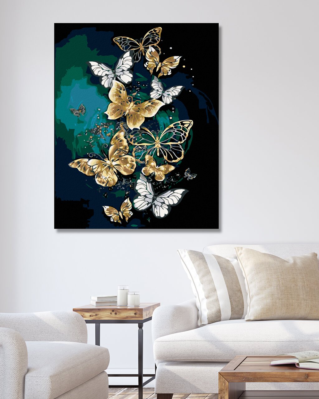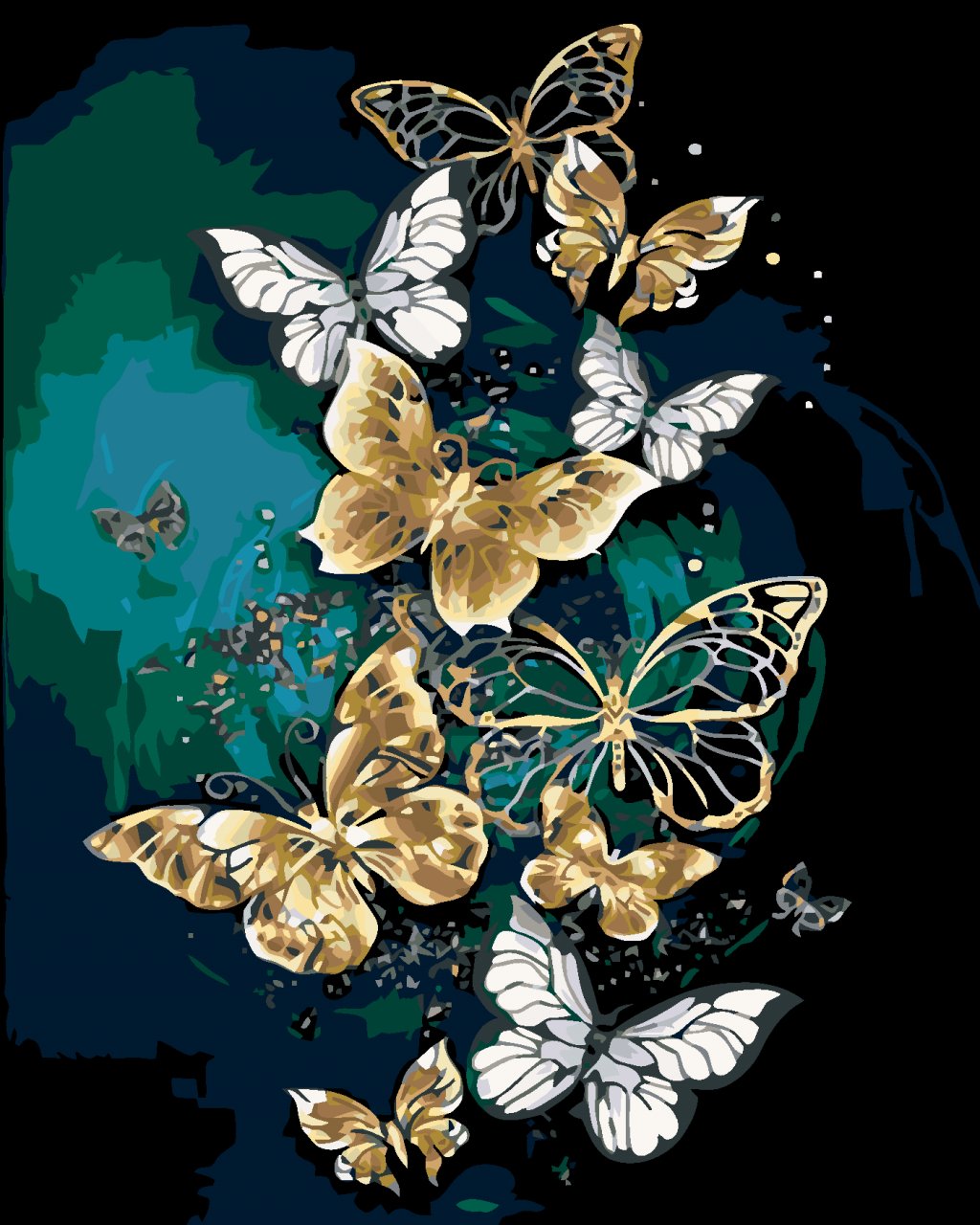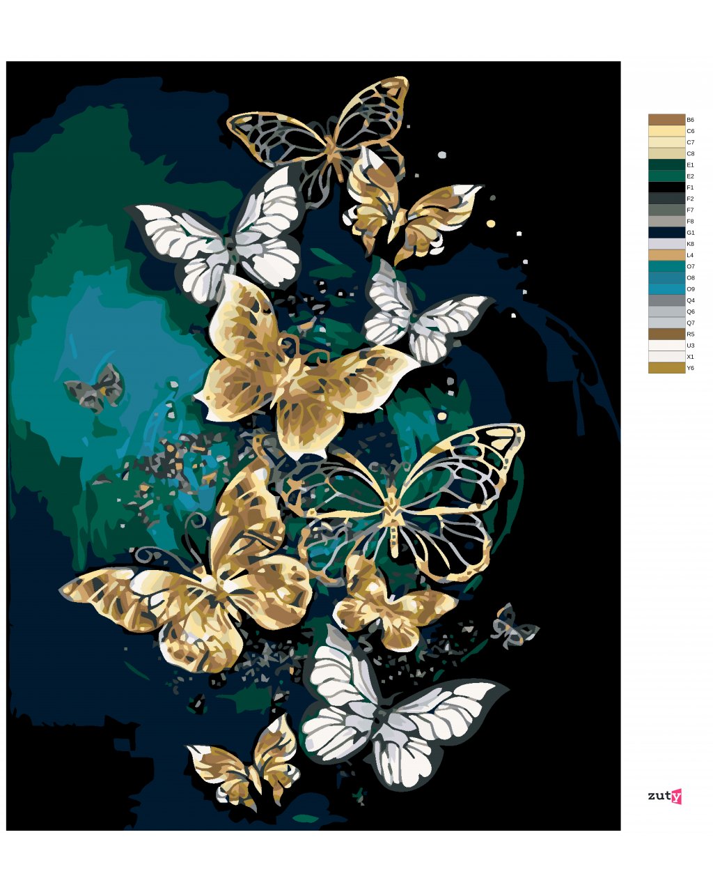 Maľovanie podľa čísel - ZLATOBIELE MOTÝLE
