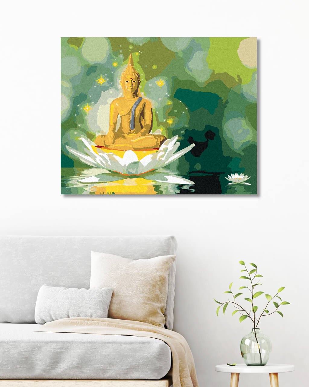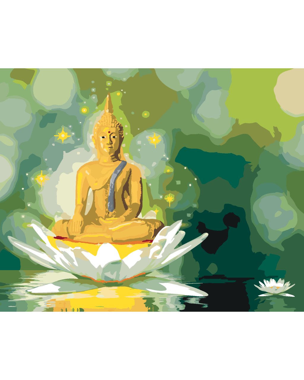 Maľovanie podľa čísel - ZLATÝ BUDDHA V BIELOM LOTOSE