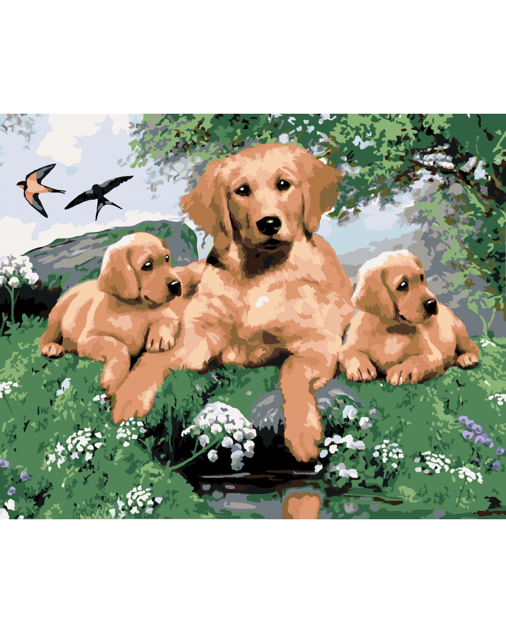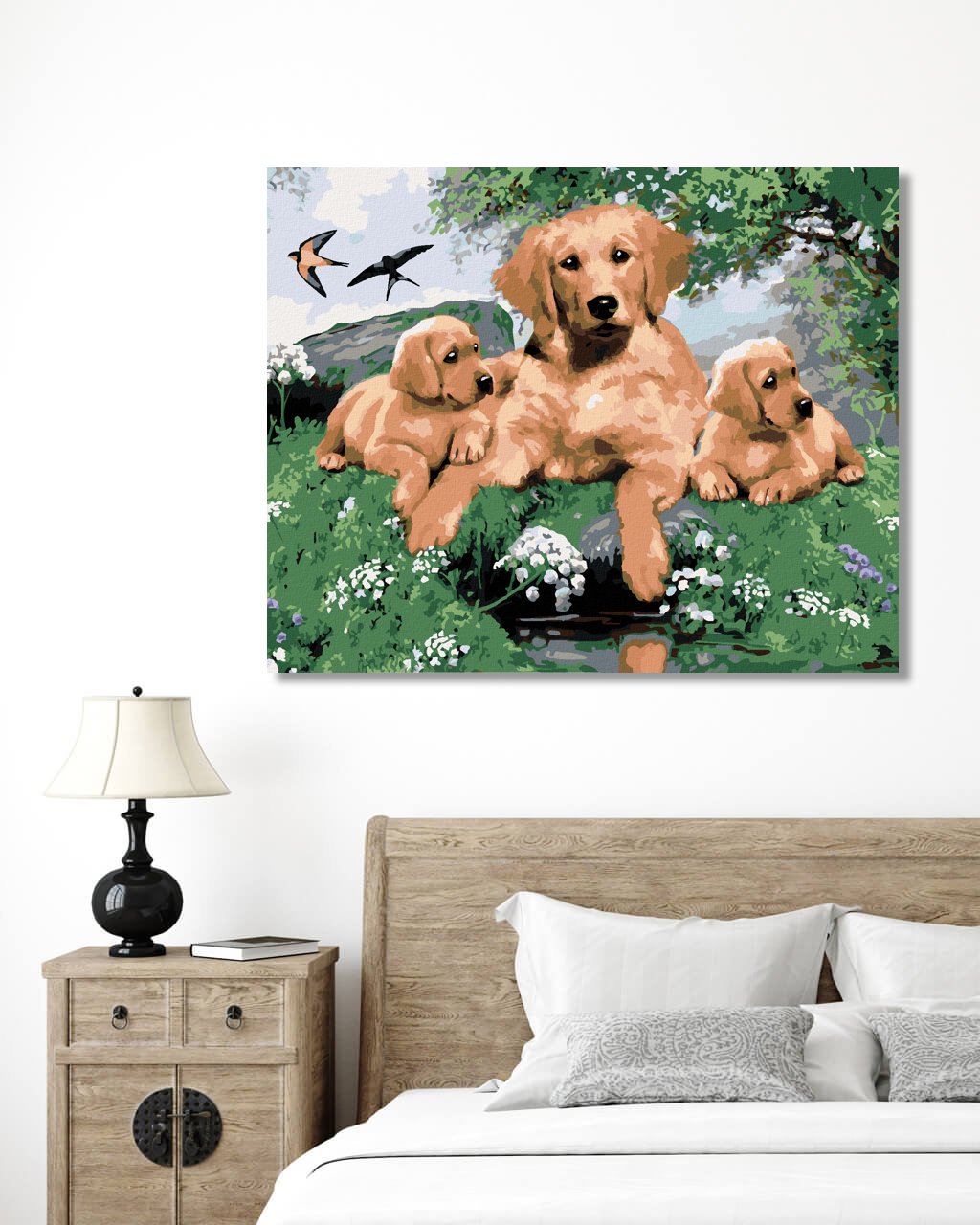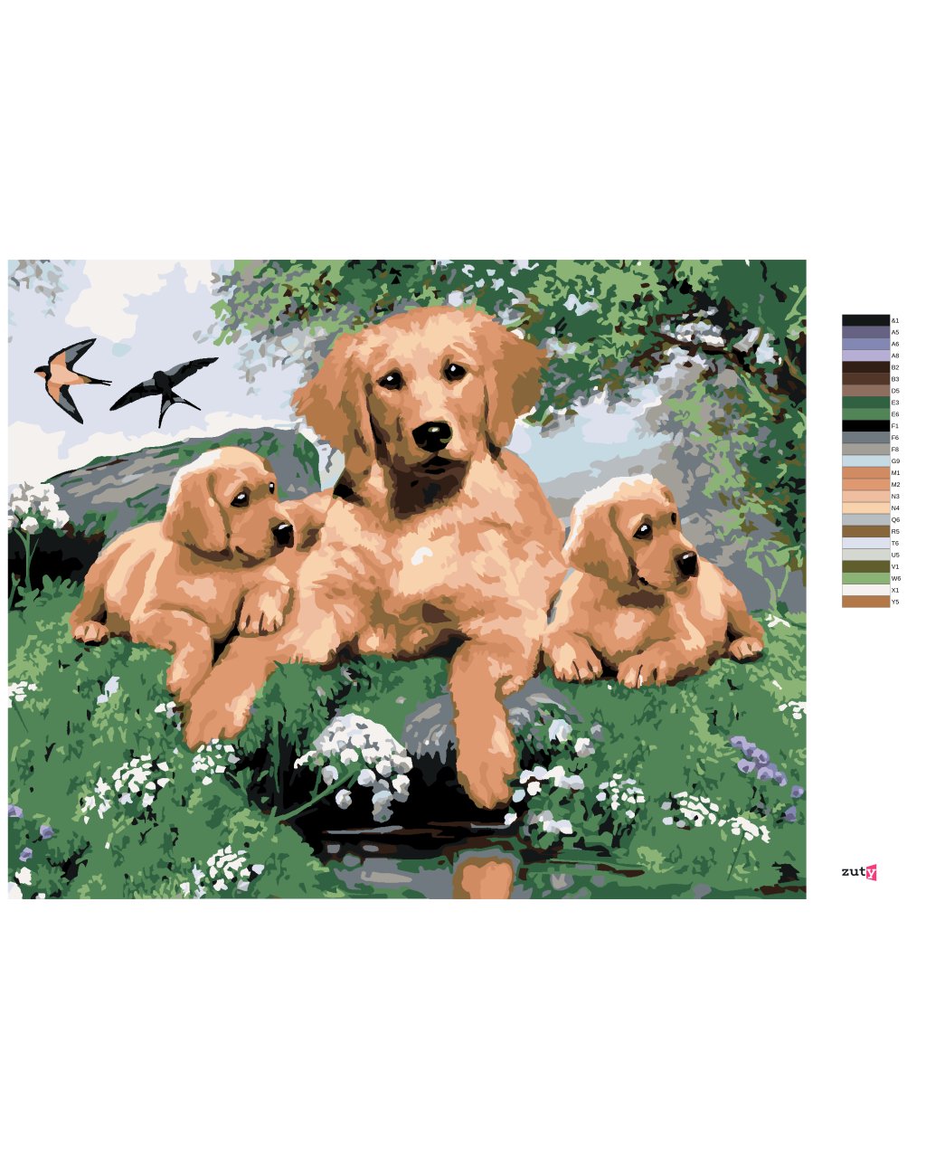 Maľovanie podľa čísel - ZLATÝ RETRÍVER A ŠTEŇATÁ (HOWARD ROBINSON)