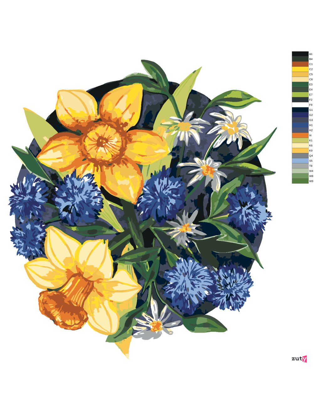 Maľovanie podľa čísel - ŽLTÉ A MODRÉ NARCISY (ALEXANDRIA GILBERT)
