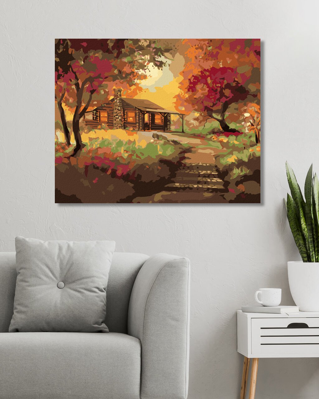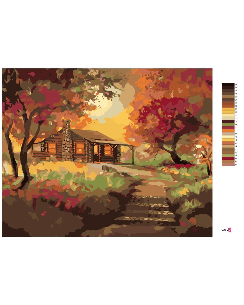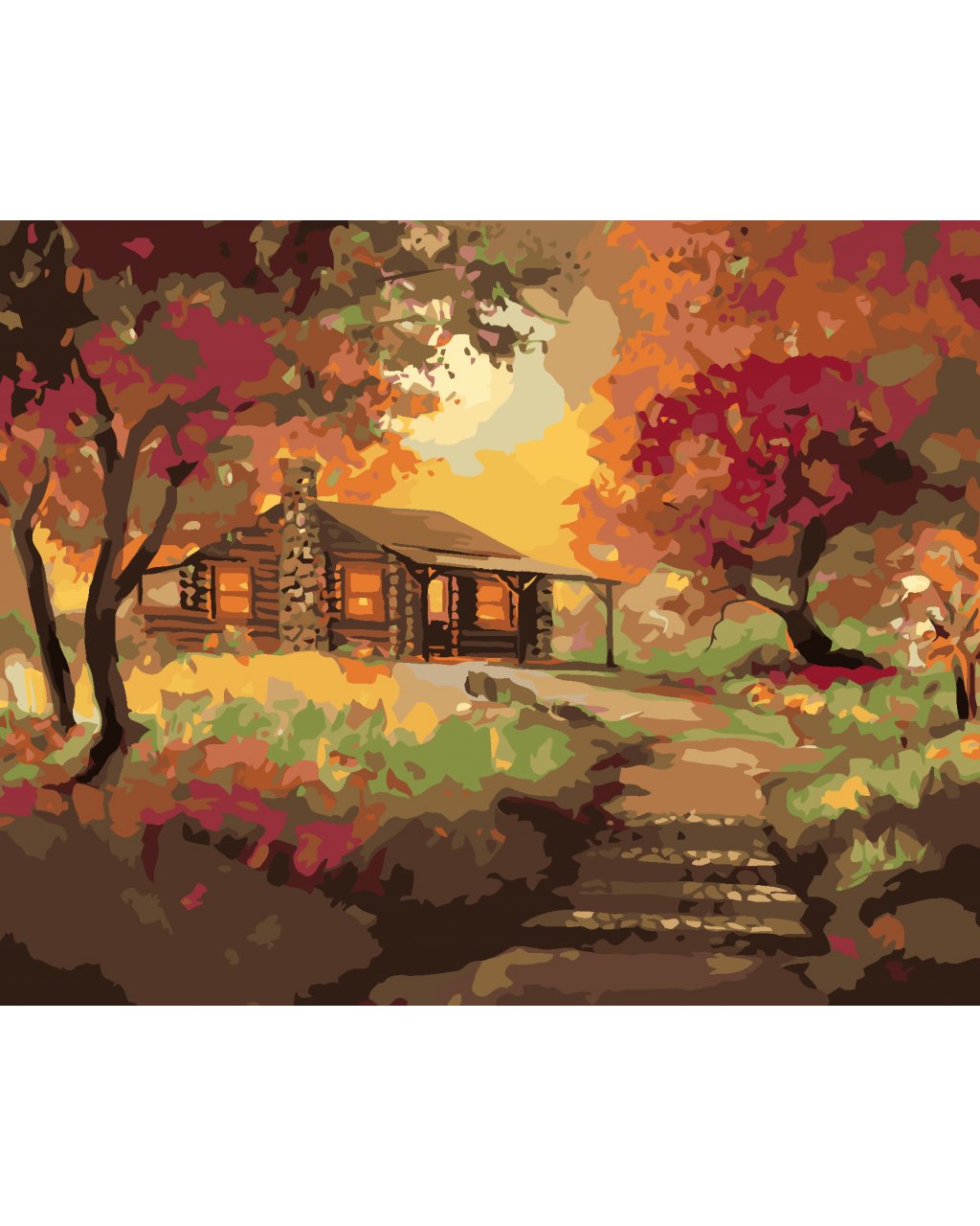Maľovanie podľa čísel - ZRUB PRI ZÁPADE SLNKA NA JESEŇ (D. RUSTY RUST)