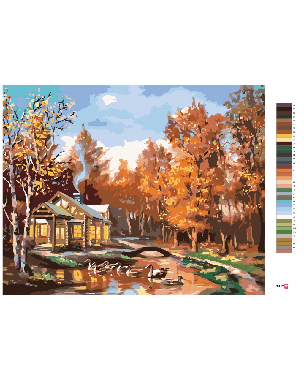 Maľovanie podľa čísel - ZRUB V JESENNOM LESE A KAČKY (D. RUSTY RUST)