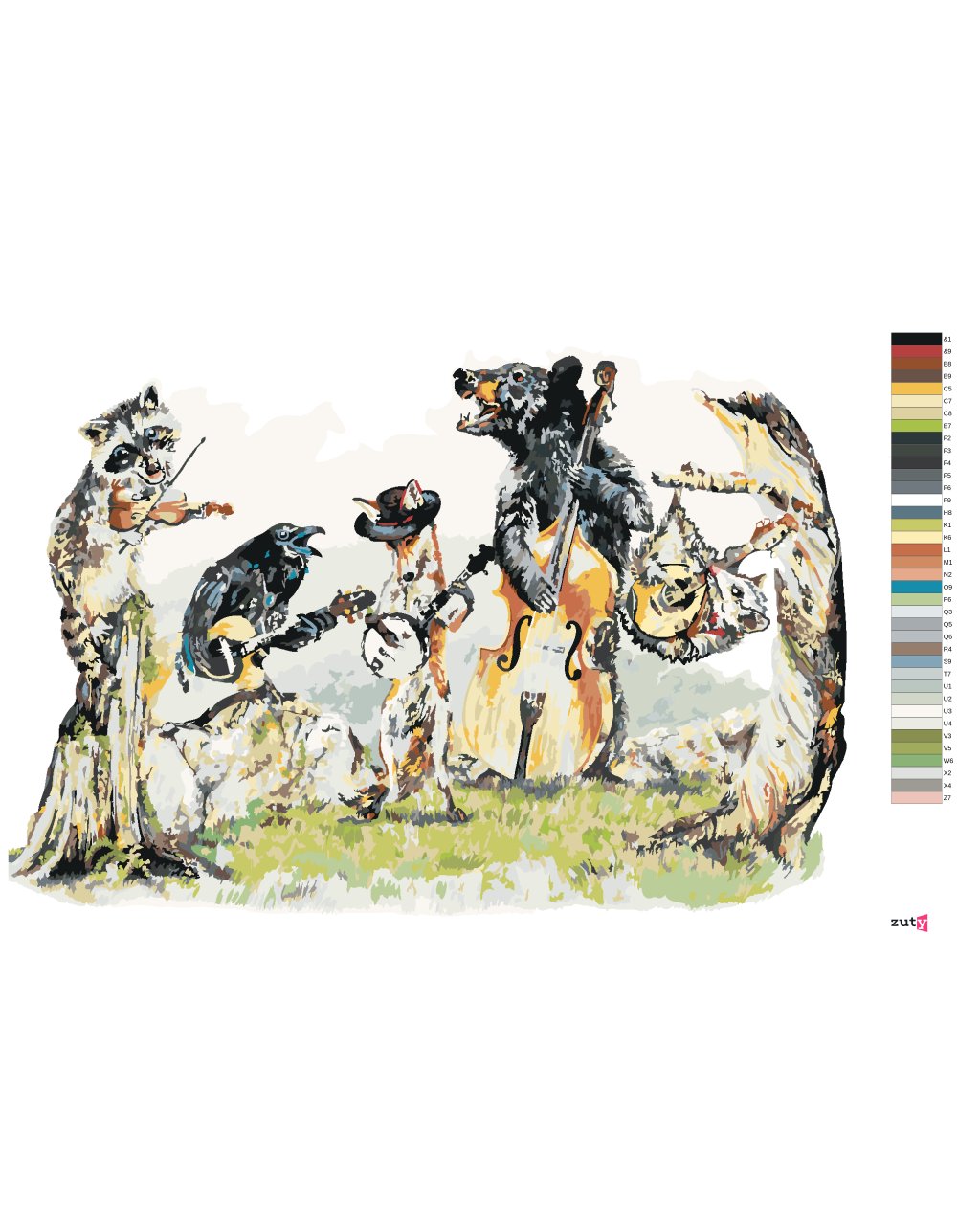 Maľovanie podľa čísel - ZVIERATÁ A HUDOBNÉ NÁSTROJE (HOLLY SIMENTAL)