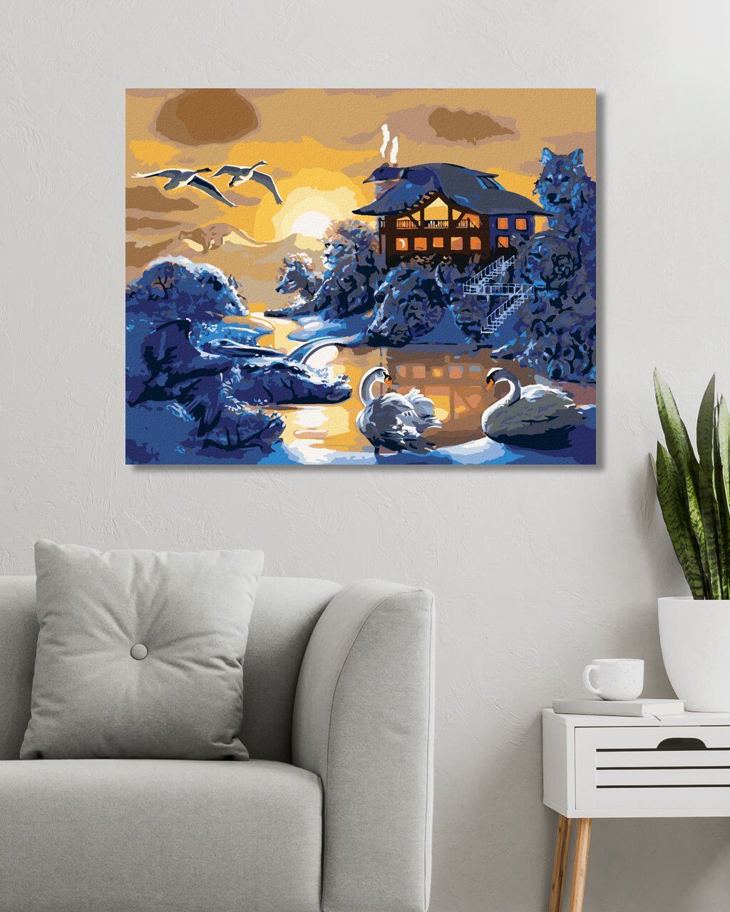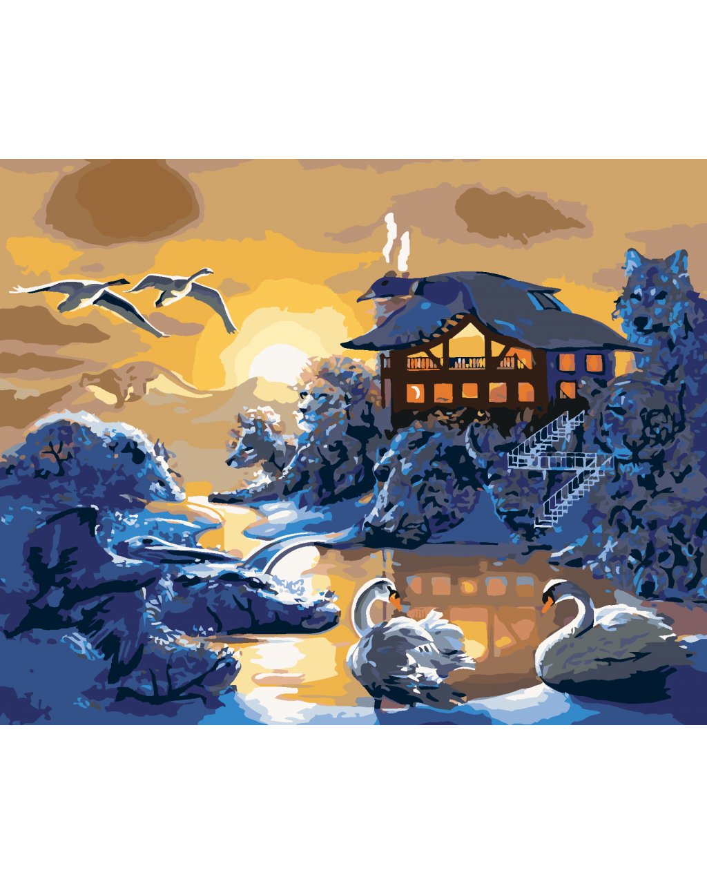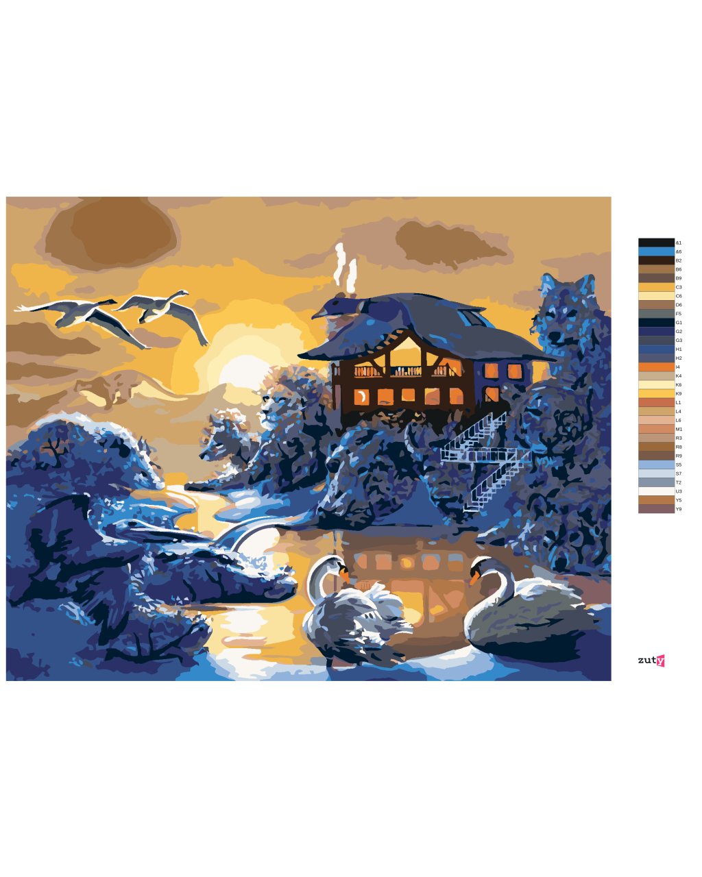 Maľovanie podľa čísel - ZVIERATÁ PRI DOME A ZÁPAD SLNKA (D. RUSTY RUST)