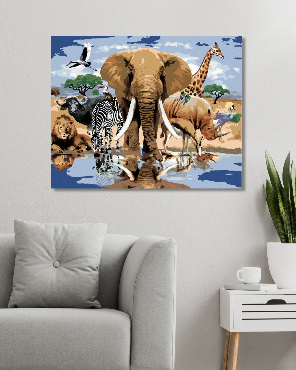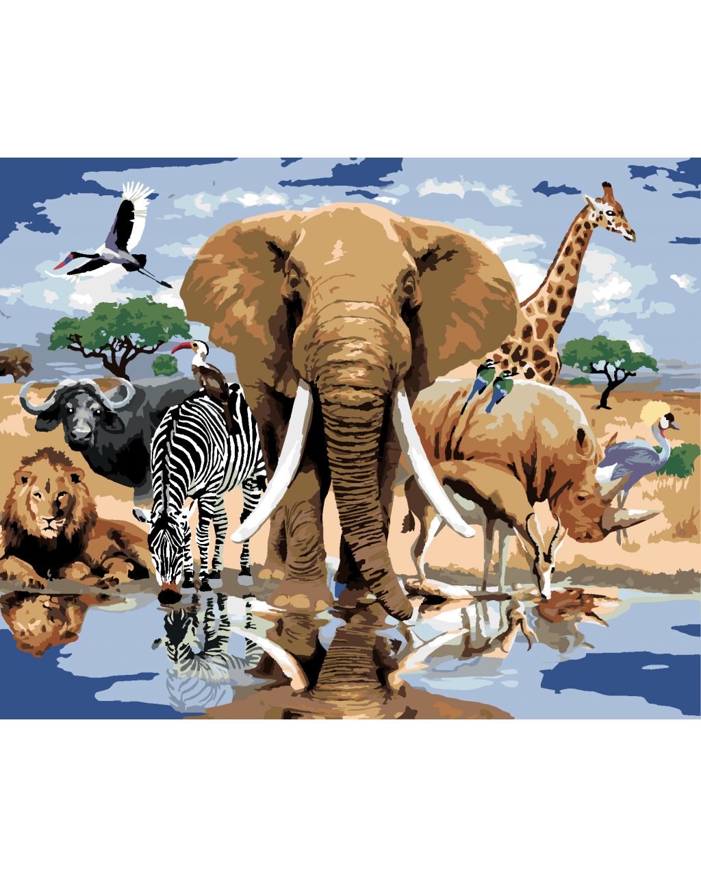 Maľovanie podľa čísel - ZVIERATÁ PRI OÁZE AFRIKA (HOWARD ROBINSON)