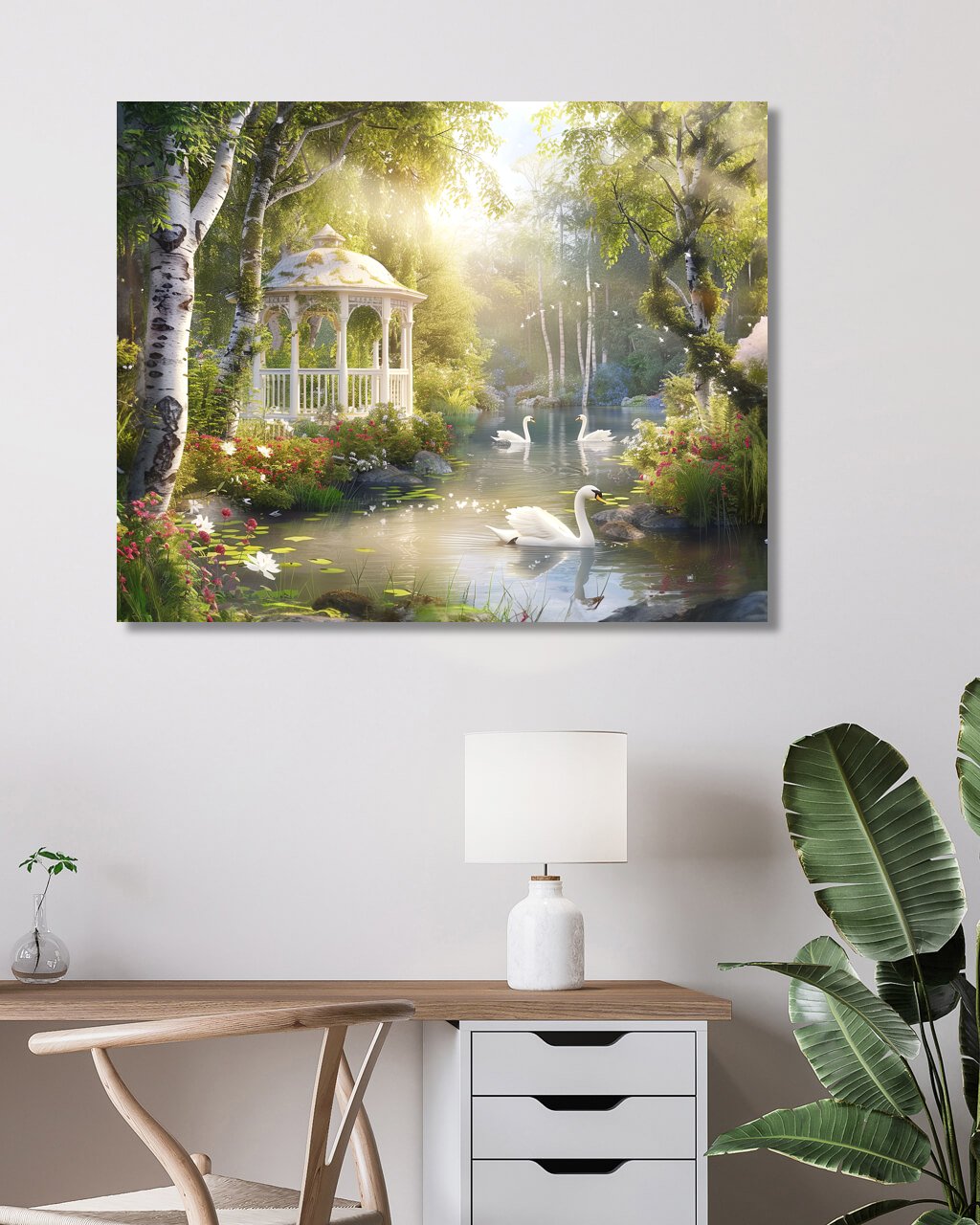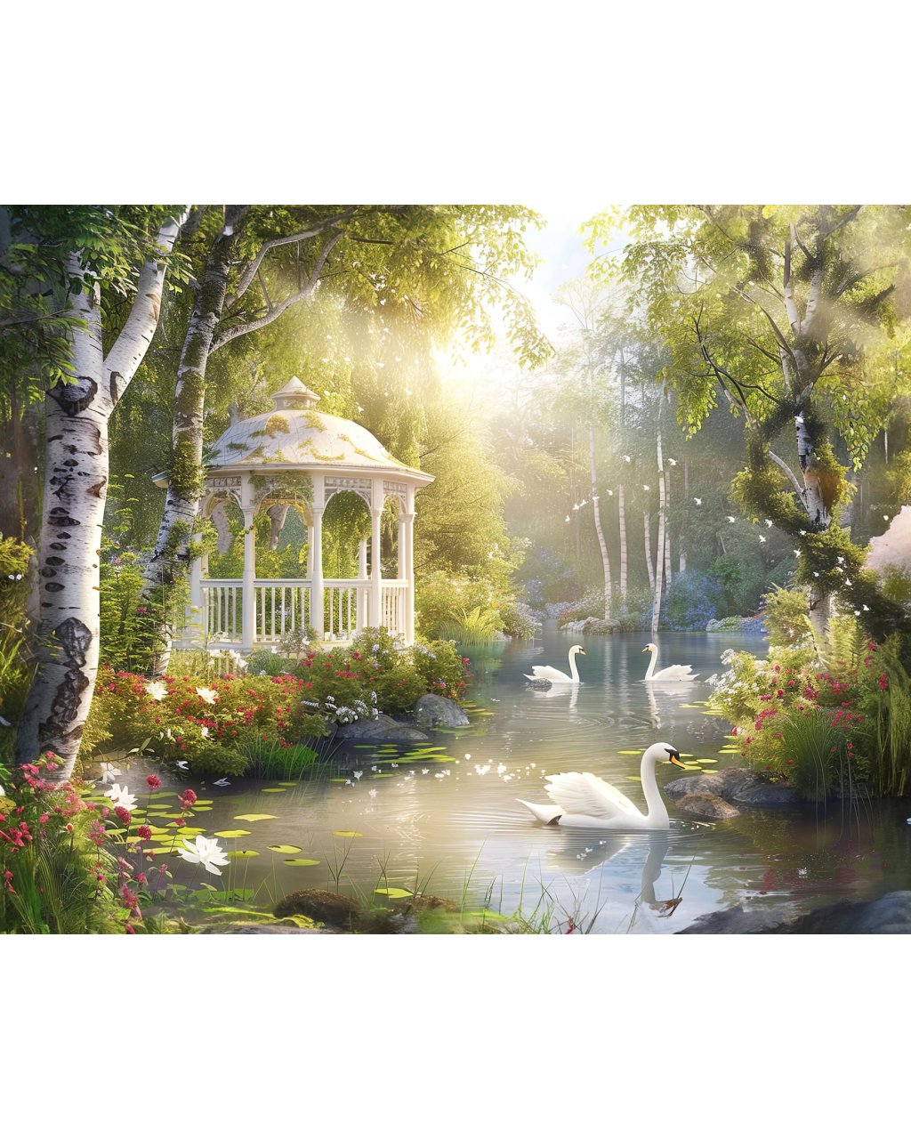 Obrazy na stenu - ALTÁNOK, LABUTE A KAČICE NA JAZERE A BREZY