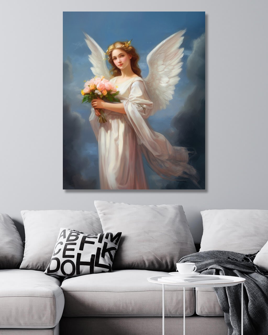 Obrazy na stenu - Anjel strážny držiaci kyticu