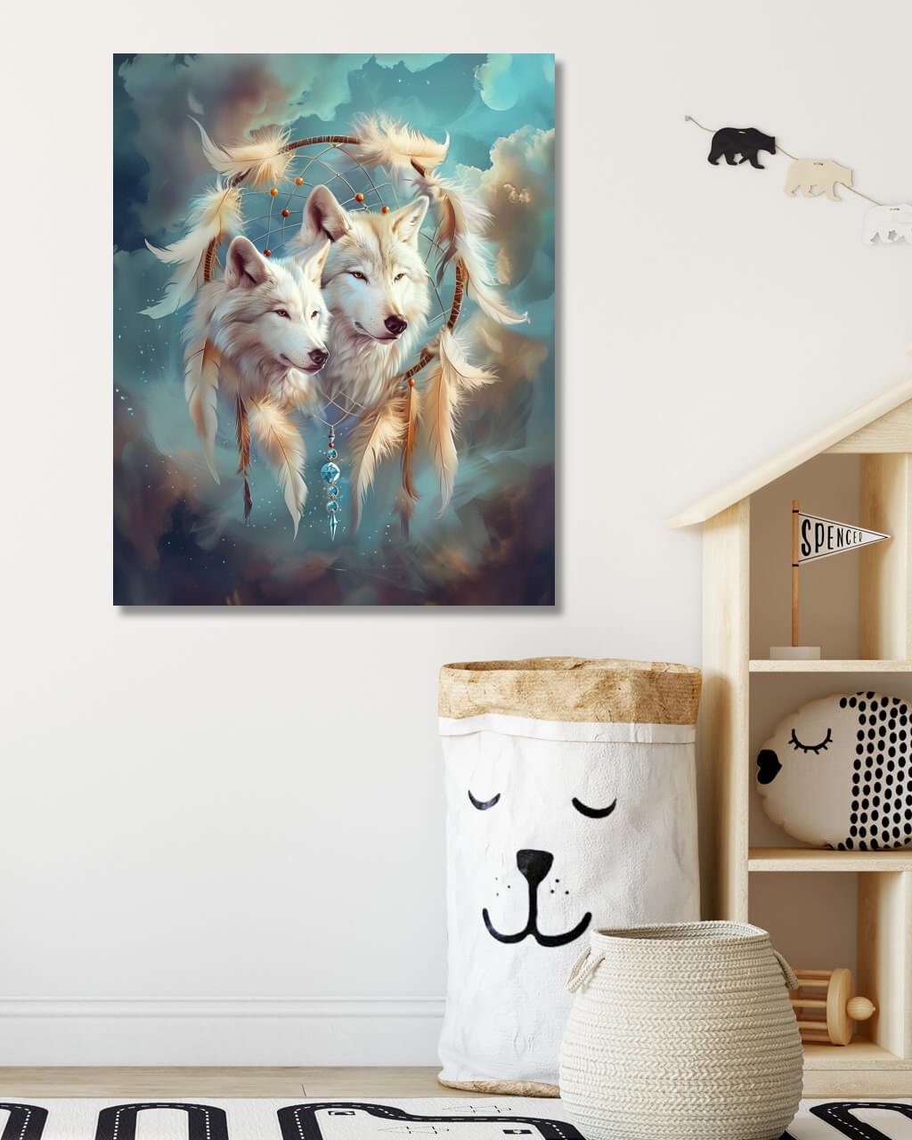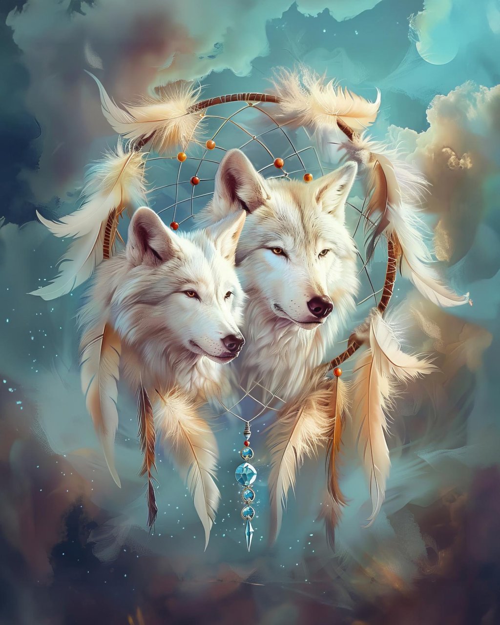 Obrazy na stenu - BIELY VLK A LAPAČ SNOV V TVARE MESIACA