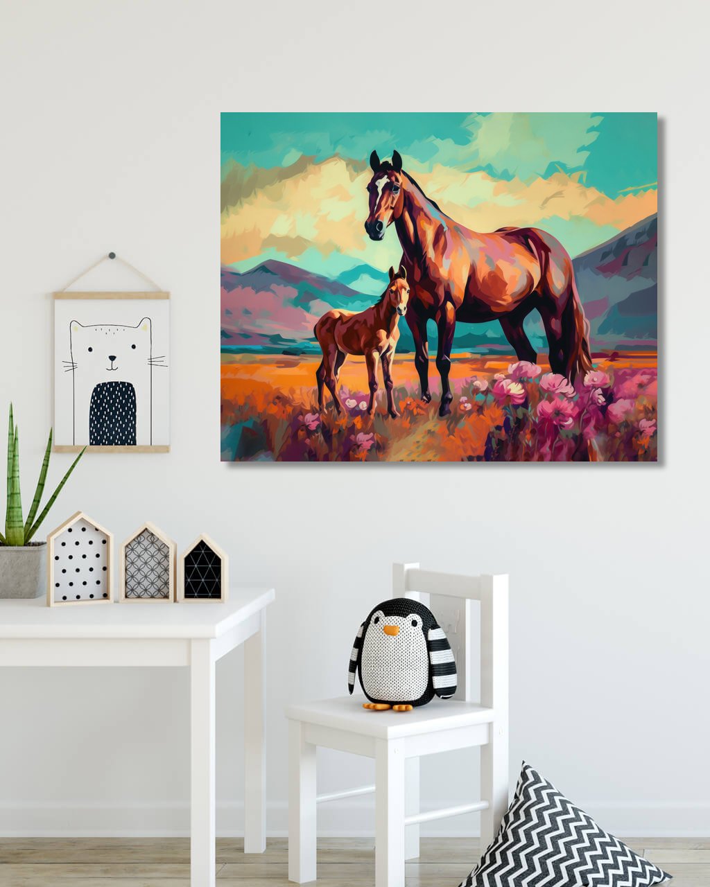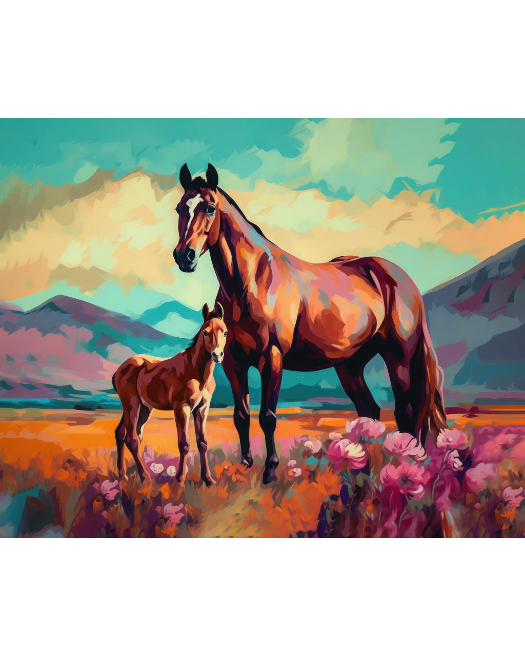 Obrazy na stenu - Farebná kobyla so žriebäťom