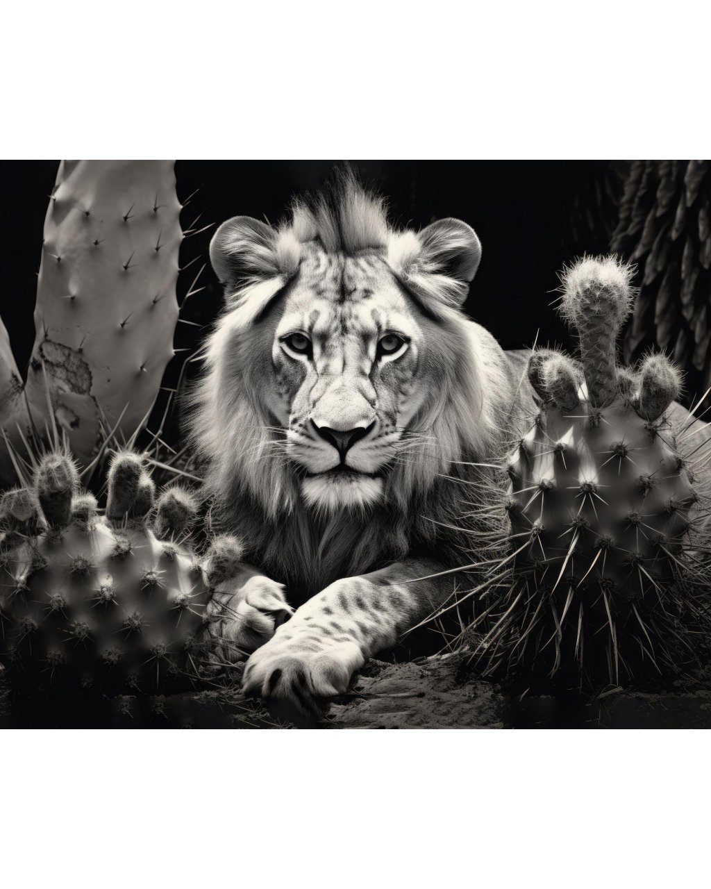 Obrazy na stenu - Lev medzi kaktusmi