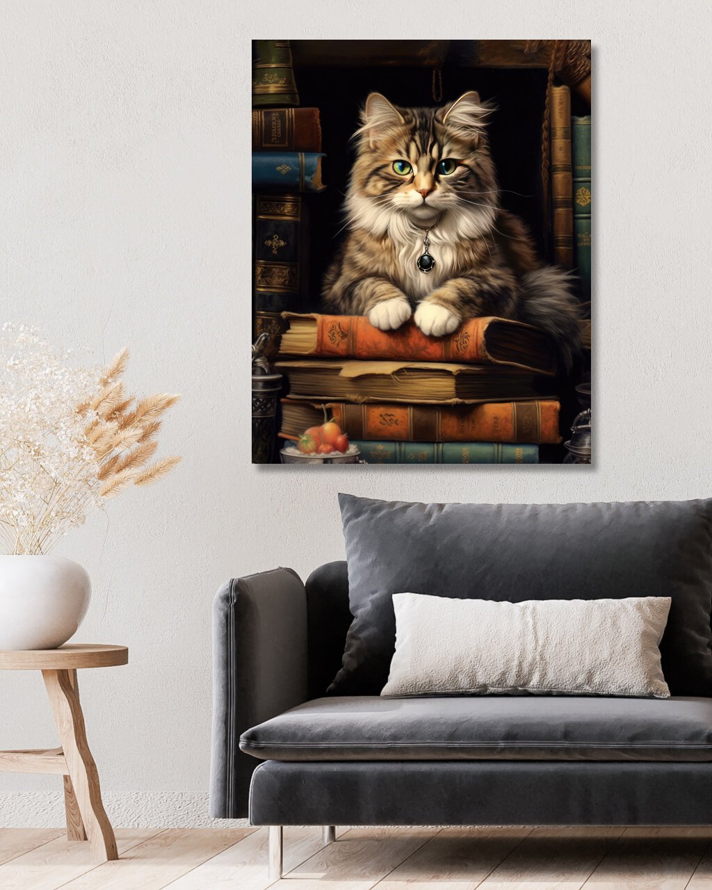 Obrazy na stenu - Mačka posadnutá vôňou kníh