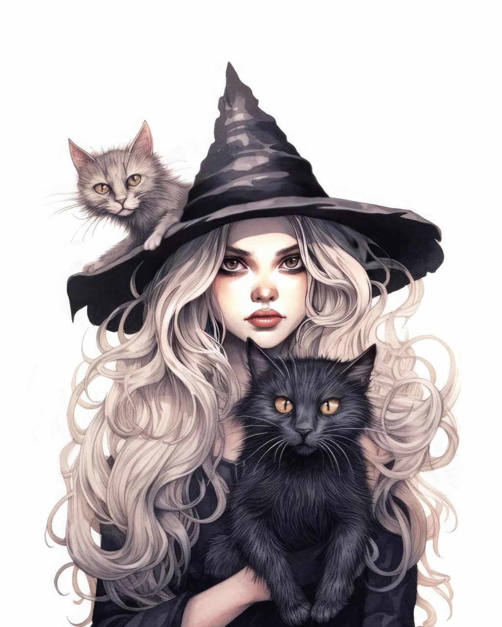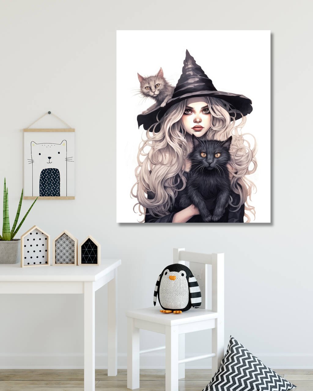 Obrazy na stenu - Mladá čarodejnica s mačkami