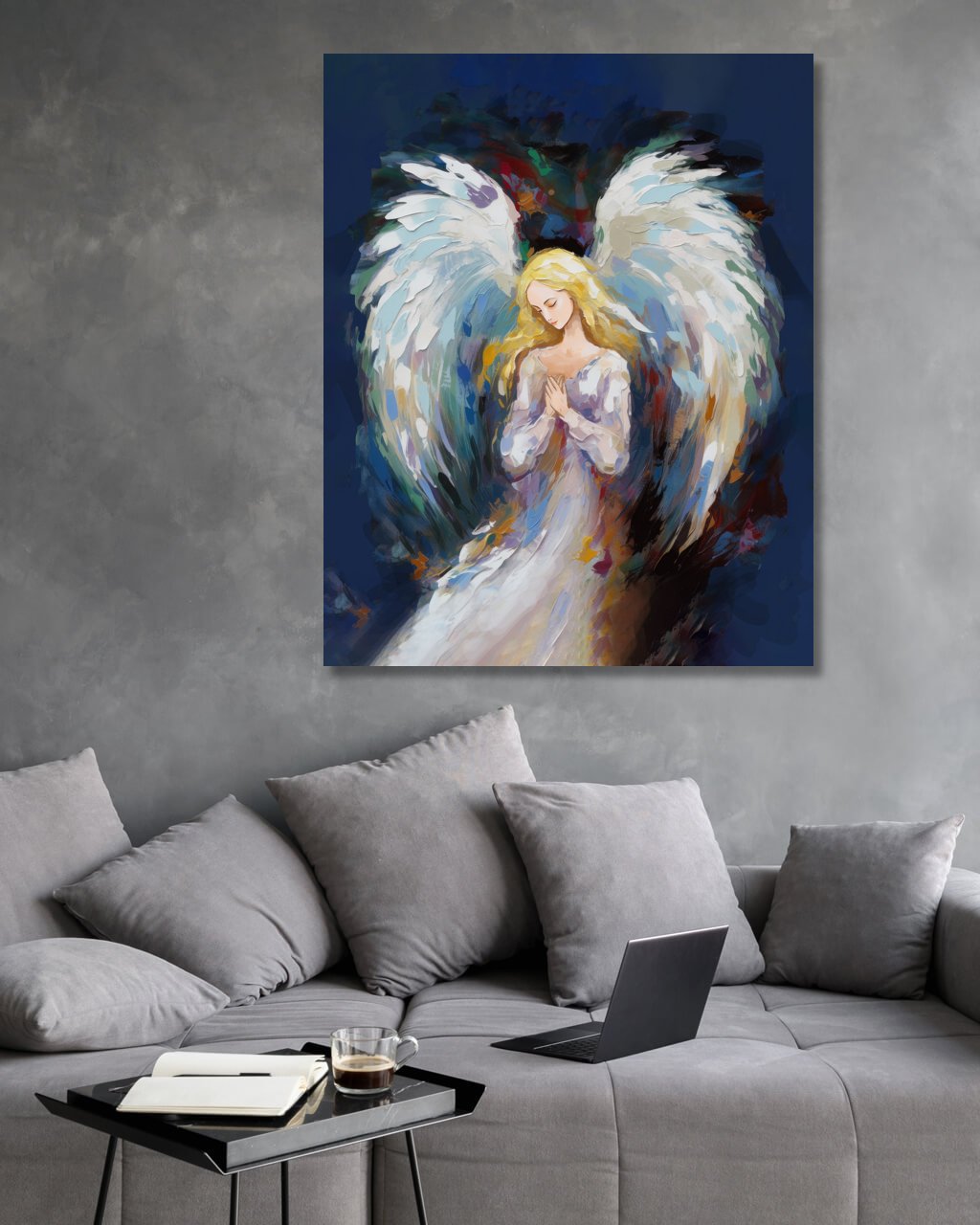 Obrazy na stenu - Modliaci sa anjel s abstraktnými krídlami