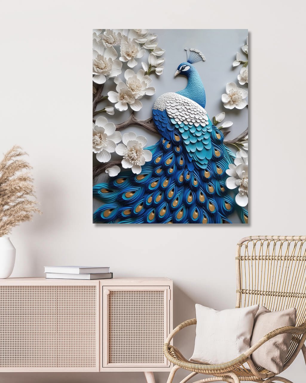Obrazy na stenu - Modrý páv medzi bielymi kvetmi