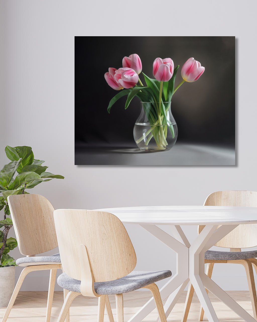 Obrazy na stenu - Ružové tulipány v sklenenej váze