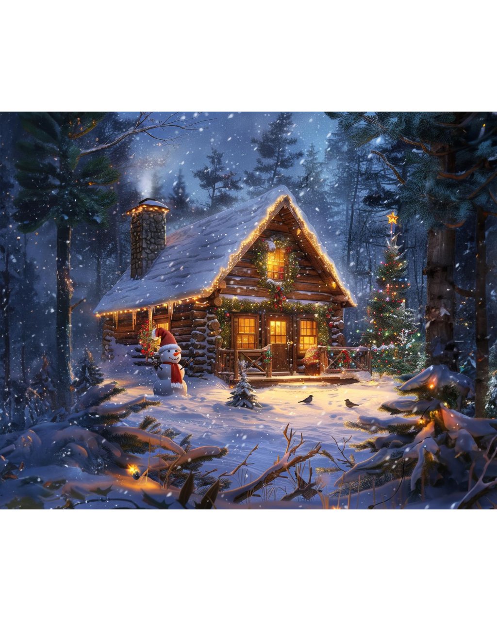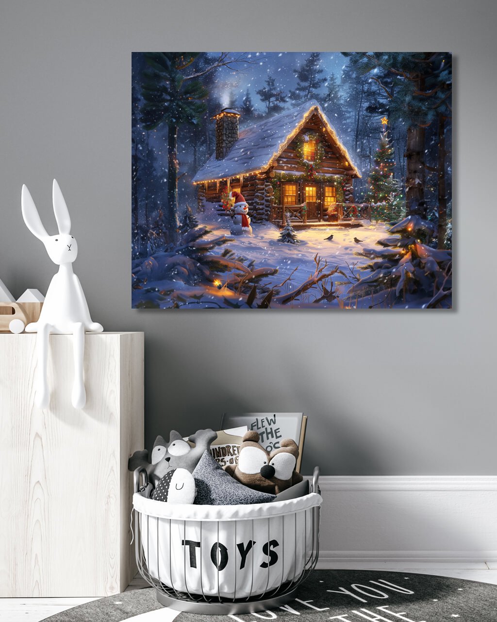 Obrazy na stenu - SNEHULIAK, VIANOČNÝ STROM A CHATA S VIANOČNÝMI SVETIELKAMI