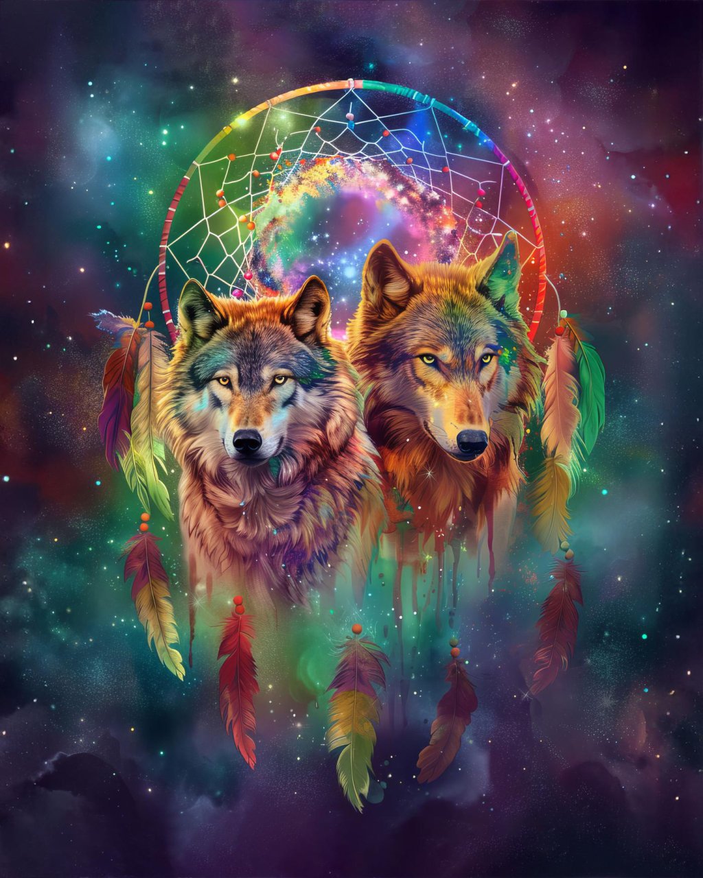 Obrazy na stenu - VLK A DÚHOVÝ LAPAČ SNOV