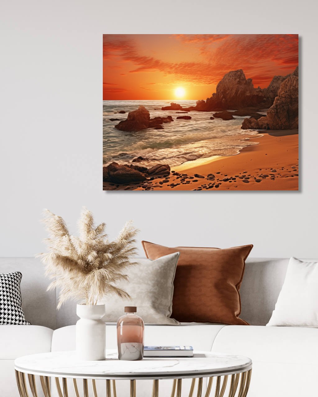 Obrazy na stenu - Západ slnka nad skalami pri mori