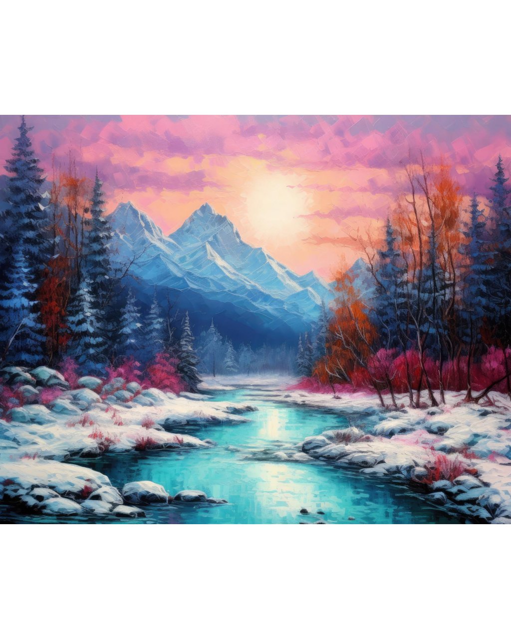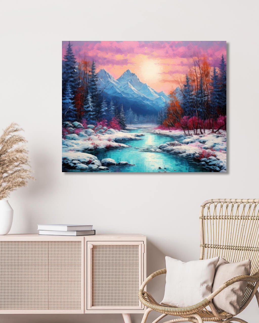 Obrazy na stenu - Zasnežená horská rieka v mesačnom svite