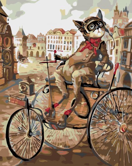 Maľovanie podľa čísel - KOCÚR NA TROJKOLKE